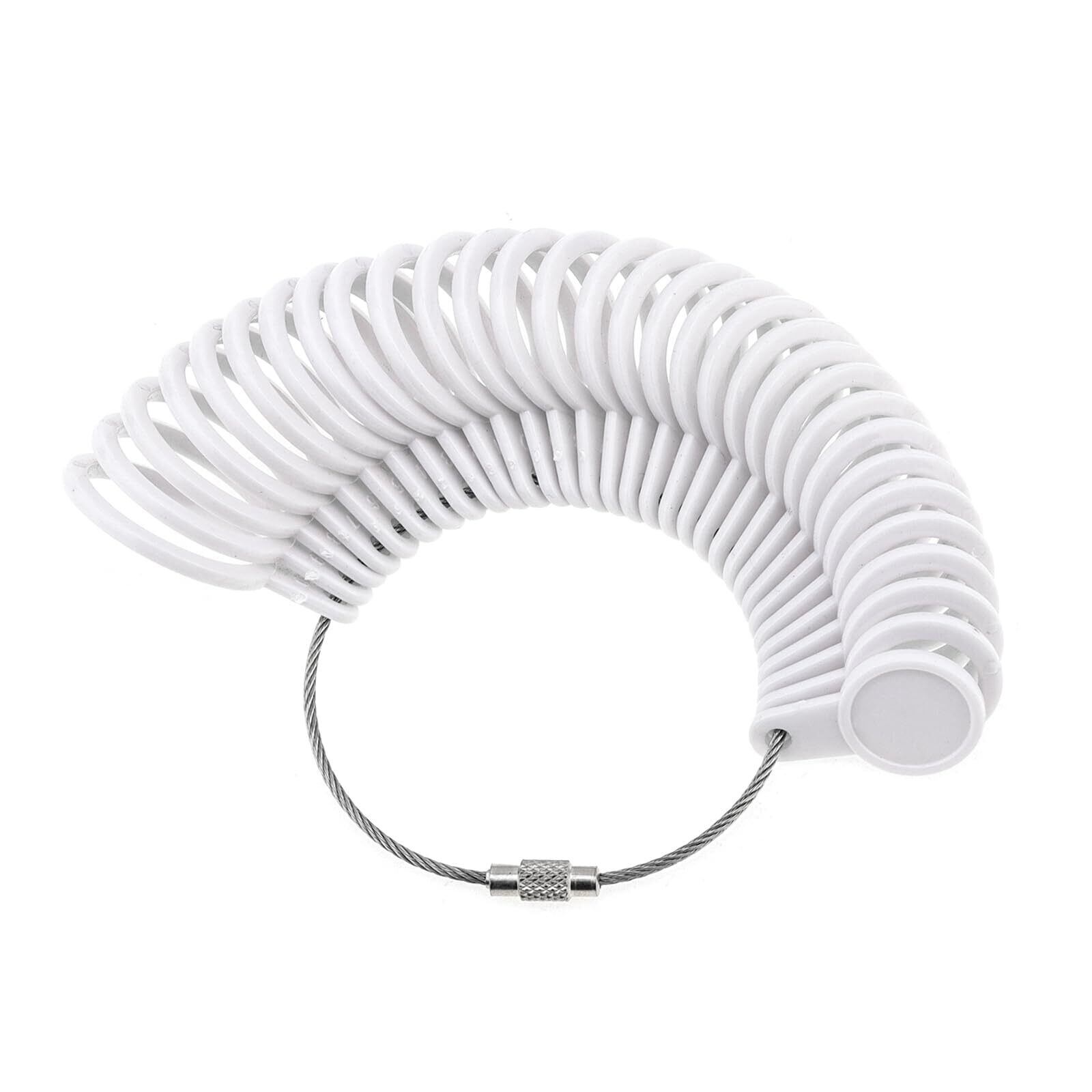 【使いやすい】リングゲージを使用するには、単に希望のリングサイズを決定するために指の上にプラスチックリングをスライドさせます。または、指輪サイズ棒で、指輪をサイズ棒の上でスライドさせ、測定値を読み取ります。