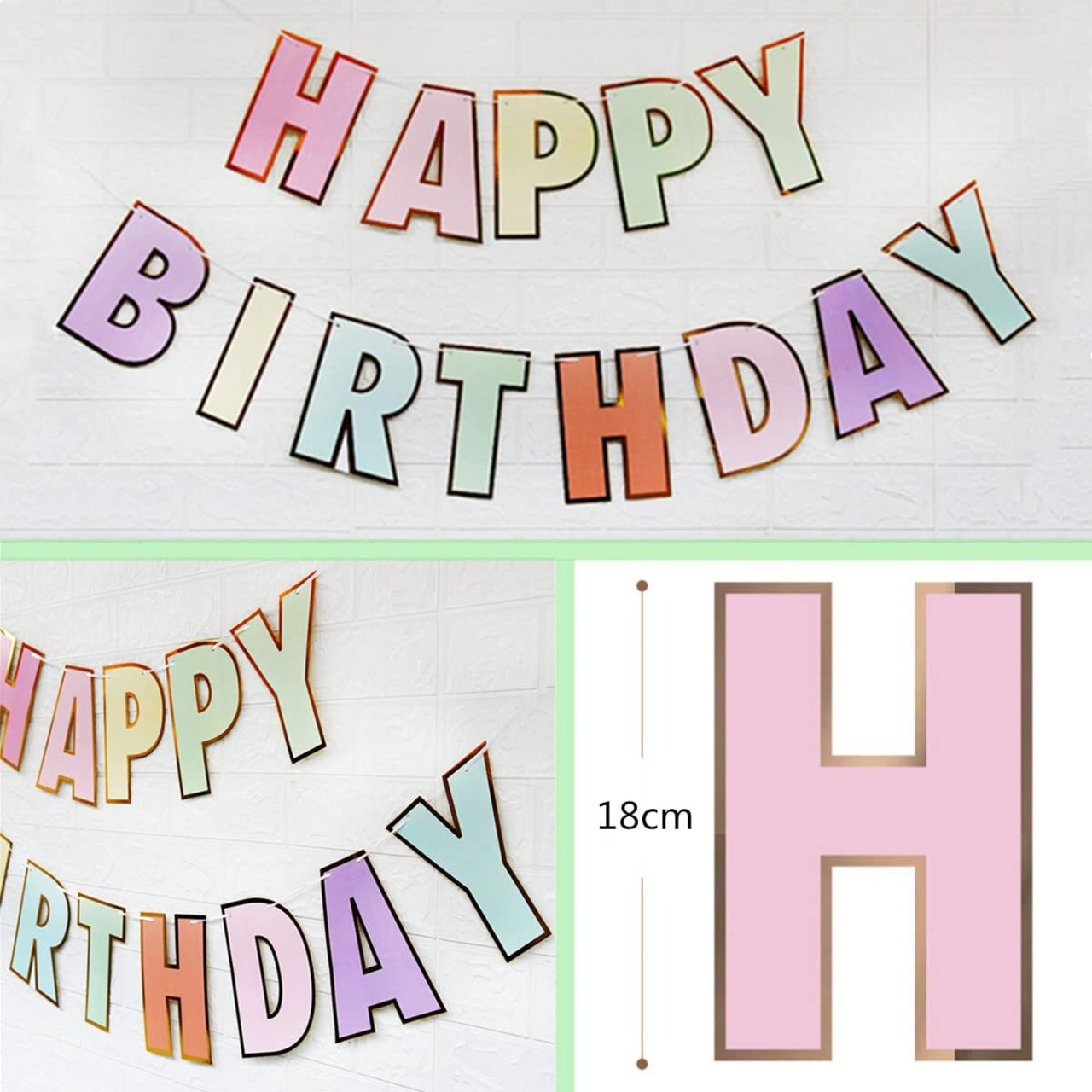 Getrays 誕生日 パーティー装飾キット、誕生日おめでとう バナー ペーパーファン ハンギング装飾 3D 愛の心 ガーランド 星 バンティング旗、再利用可能 装飾的 パーティ 背景の写真小道具(マカロン)
