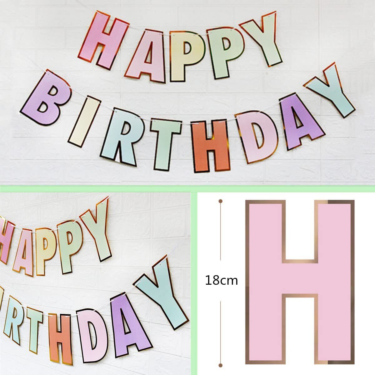 Getrays 誕生日 パーティー装飾キット、誕生日おめでとう バナー ペーパーファン ハンギング装飾 3D 愛の心 ガーランド 星 バンティング旗、再利用可能 装飾的 パーティ 背景の写真小道具(マカロン) | yankees
