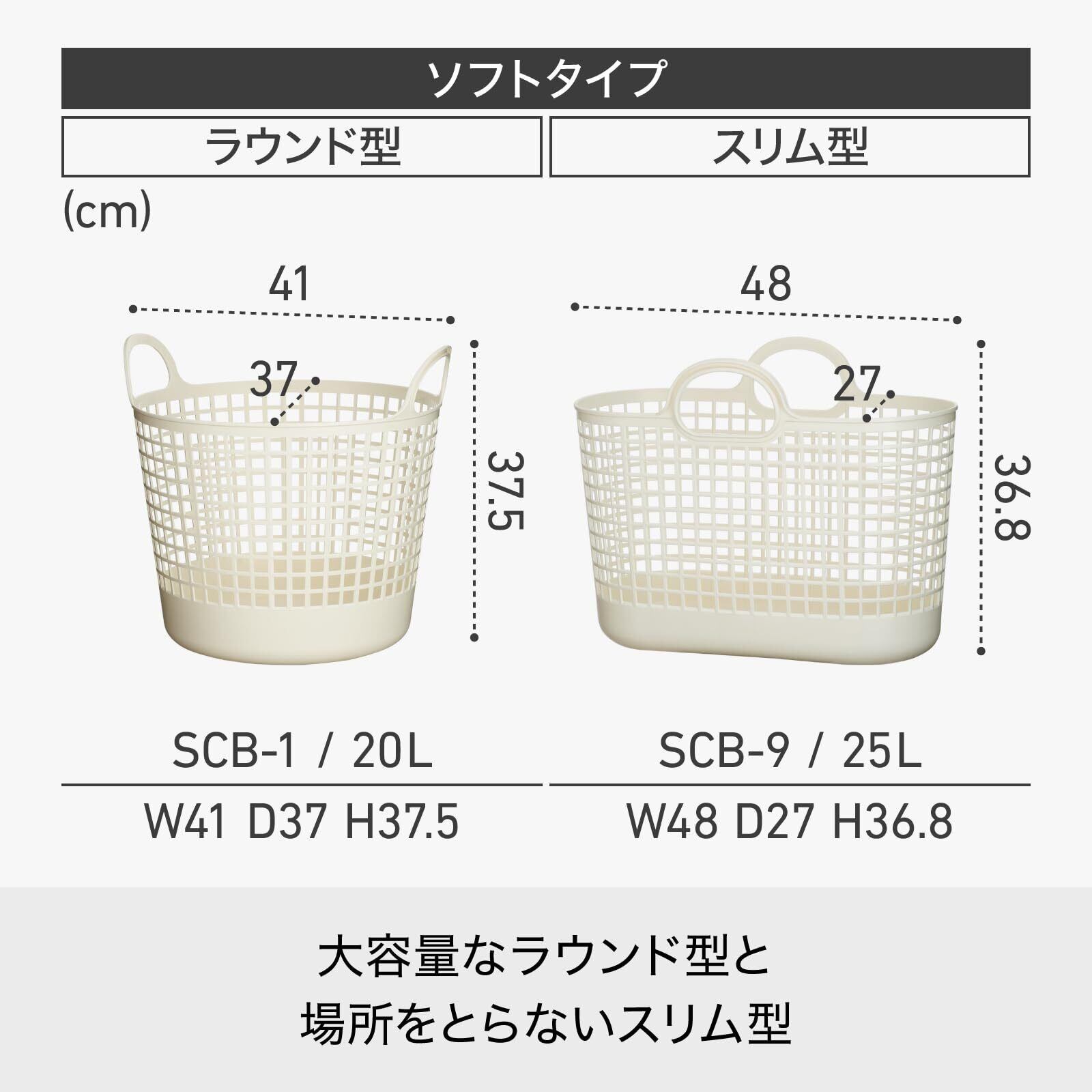 ライクイット(like-it) 洗濯カゴ 持ち手付き スリムバスケット 約幅48 奥27 高36.8cm ホワイト 日本製 SCB-9 柔らかい バスケット ランドリー収納