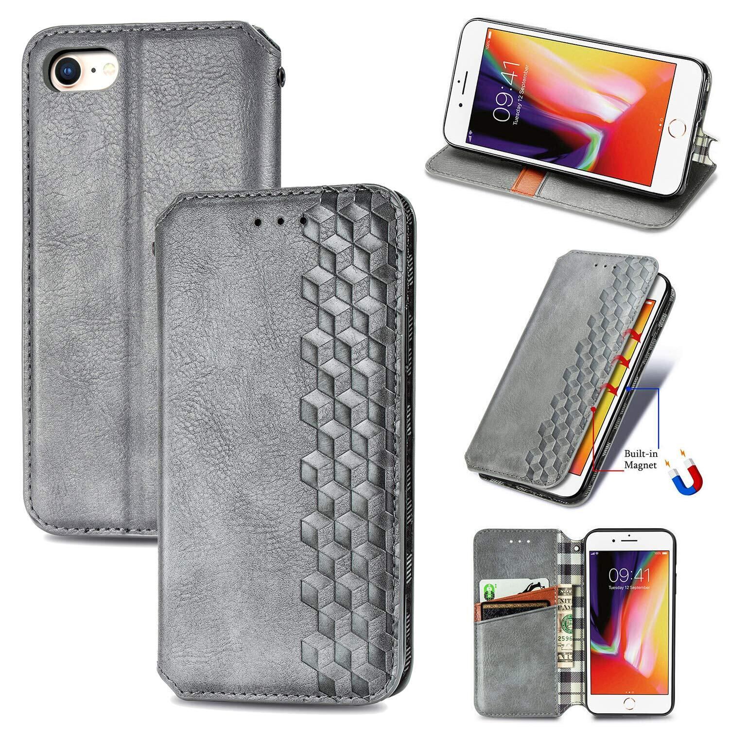 に適用するiPhone SE 第3世代 (2022) / iPhone SE 第2世代 (2020) / iPhone8 / iPhone7 ケース 手帳型 ノートブック型ビジネスフォンケース 携帯電話保護カバー強い吸引力ノートブック型多機能携帯電話ホルスター財布携帯電話ホルダーバンプパターンテクスチャ耐久性摩擦耐性携帯電話ケース男性と女性に適した多色オプション (グレー)