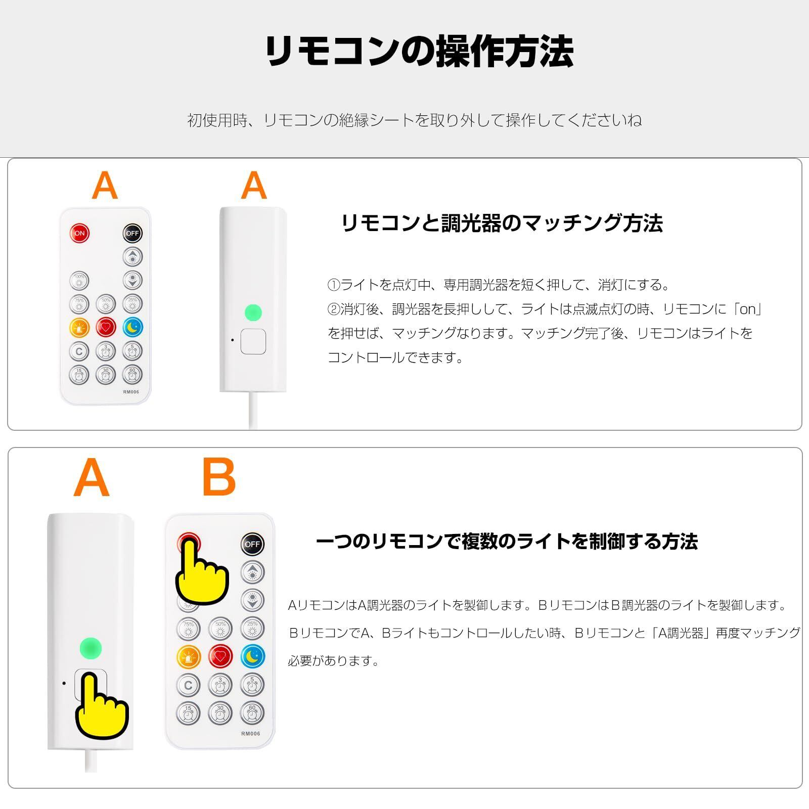 【RFリモコン・無段階調光・タイマー・メモリ機能】RFリモコンと専用調光器が付属、電源のオンオフはもちろん、明るさも(10%~100%)無段階に調整できます。自動消灯のタイマー設定:3分、5分、15分、30分、60分。またライトの記憶機能も搭載、お気に入り明るさ設定後、次回点灯する時は調整必要なし!