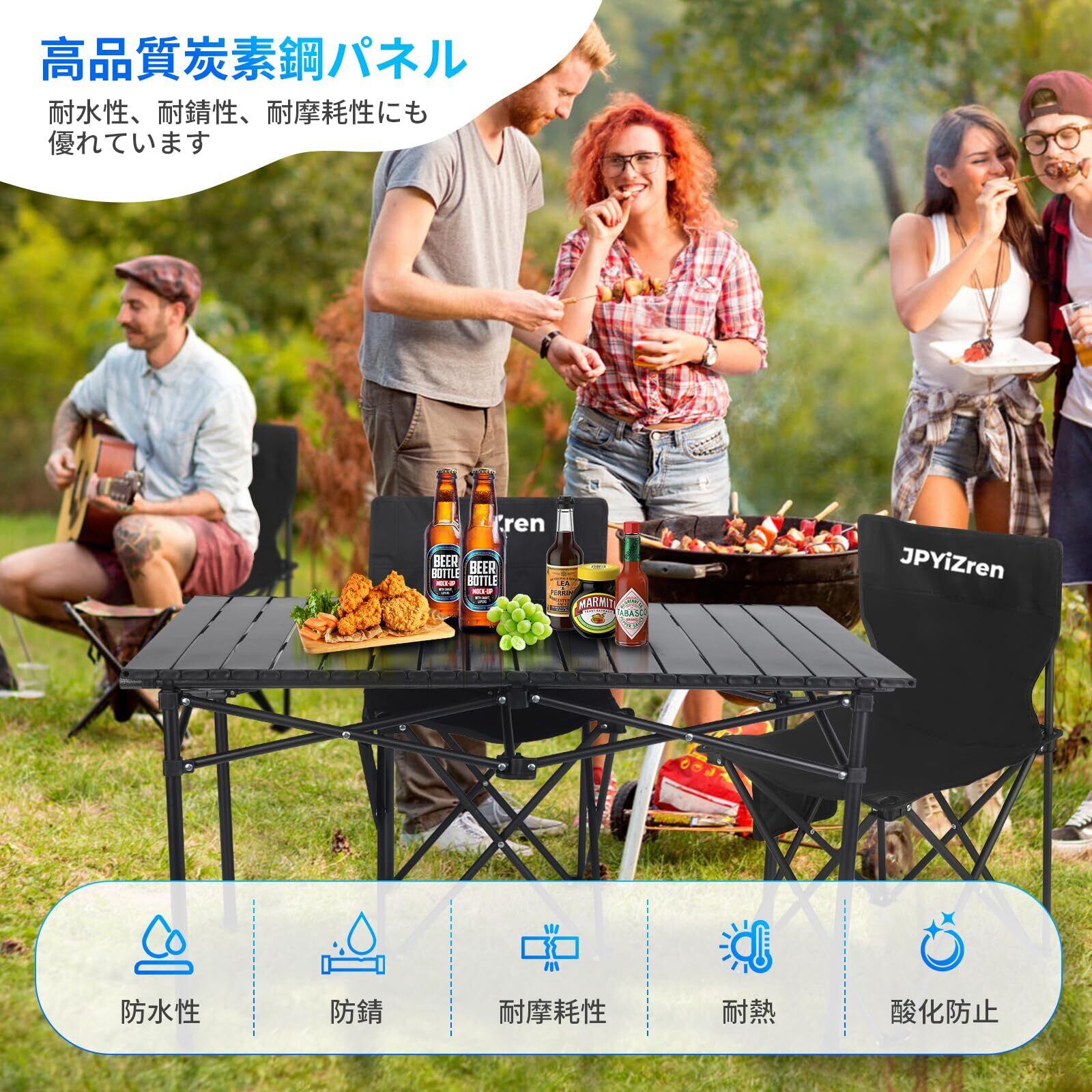 軽量で持ち運びやすい:折りたたみテーブル&チェアセットは、軽量設計で持ち運びや収納が簡単です。折りたたむとコンパクトになり、携帯用バッグも付属しているため、いつでもどこでも屋外活動を楽しむことができます。バーベキューやキャンピングカー旅行、アウトドアでの食事にも便利です。