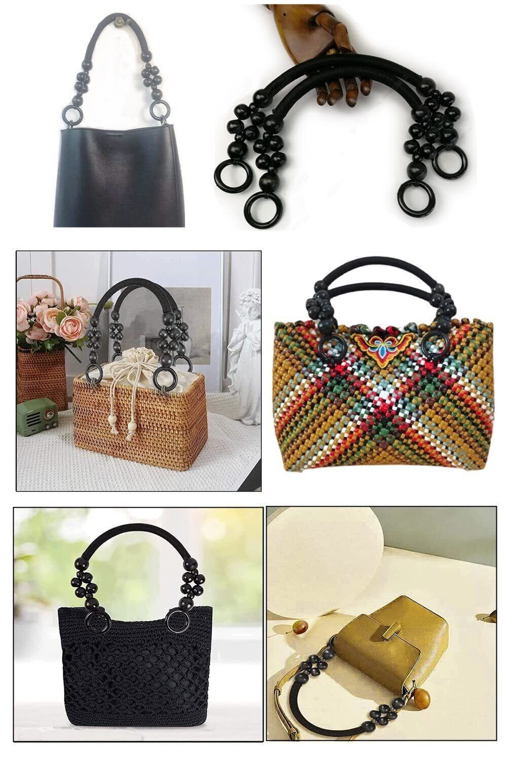 YFFSFDC 持ち手 木製 ウッドビーズ付き 6個セット 財布のハンドル ハンドバッグハンドル DIY 手芸 バッグ用 修理 交換用 持ち手 取っ手