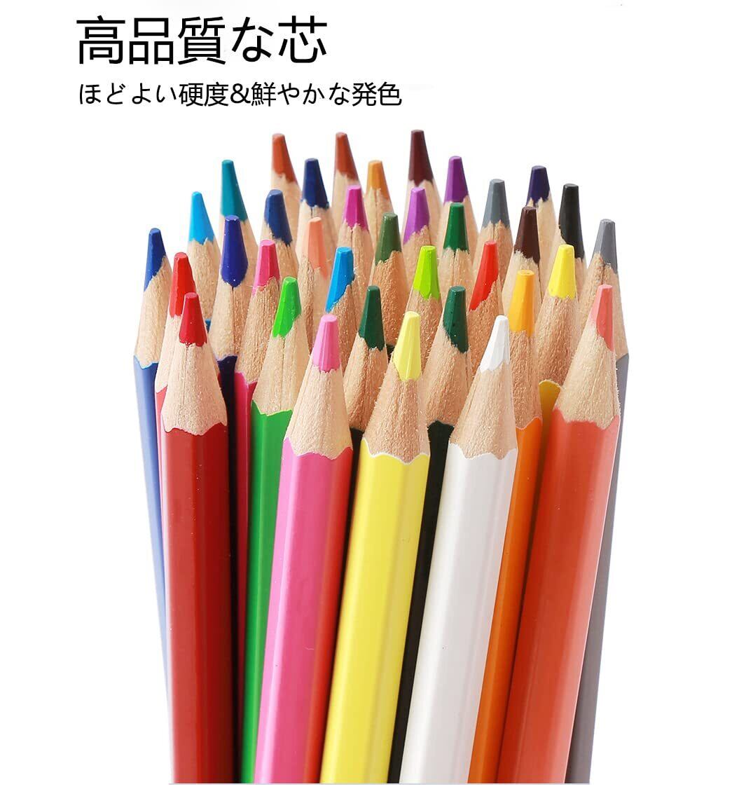 高品質な芯:高品質原材料を採用し、芯が折れにくく、削る際にも芯が折れにくくなっています(鉛筆削り付きですが、でも、鉛筆削りの色はランダムで色の選択は出来ません、ご理解してください)