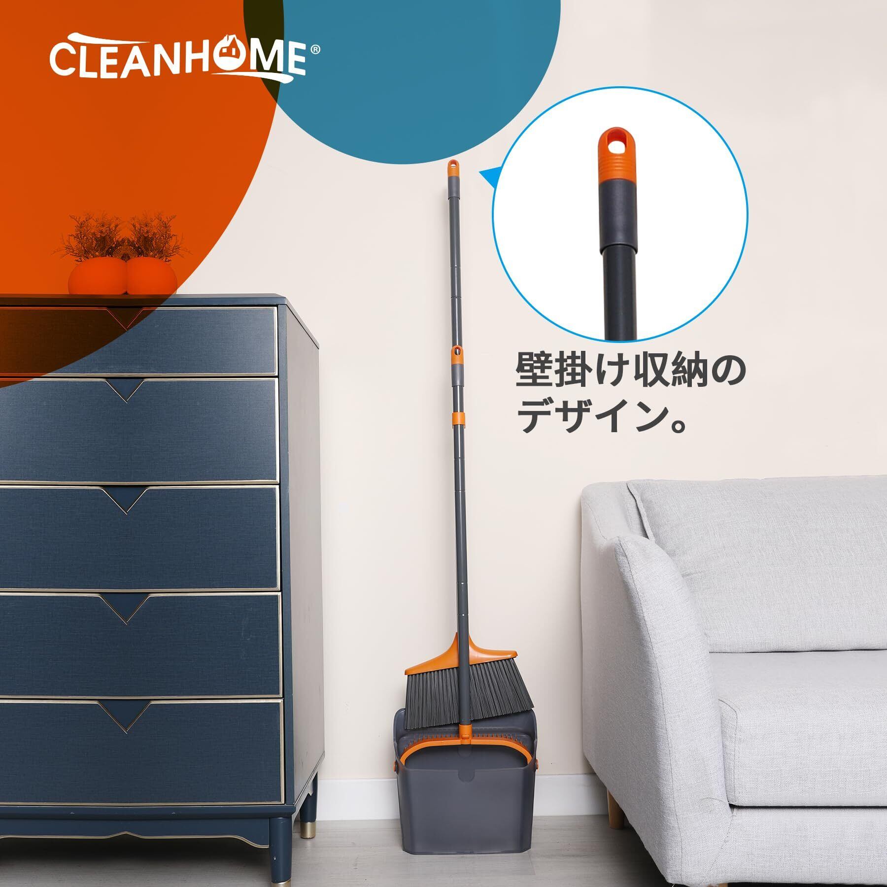CLEANHOME ほうき ちりとり セット ほうき 室内 屋外 立て式 収納 4段ポール 長さ調節可能 41-117cm ノブ付き 防風 軽量 腰曲げず 掃除用品 アウトドア/玄関/ガーデニング/庭/ベランダ/美容室/コンビニ (オレンジ)