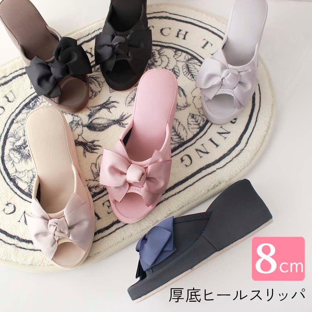 ヒールスリッパ 8cm 厚底リボンスリッパ