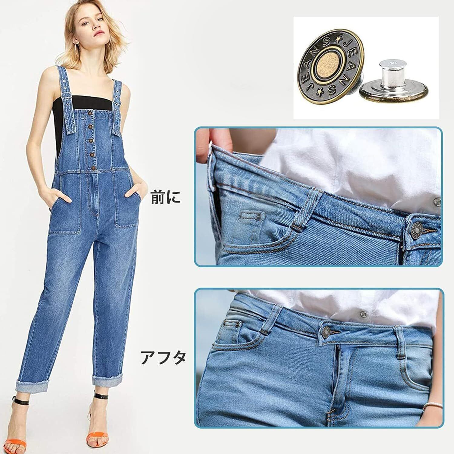【多種の用途が広く応用されている】ジーンズボタンは1インチ(約2.5 cm)の空間を提供でき、ウエストサイズを縮小または拡大することができる。ジーンズ、ショートパンツ、ジャケット、帽子、リュックサックなど、さまざまな衣類やアクセサリーに適しており、ボタン1セットで複数のコーディネートの柔軟性を高めることができます。