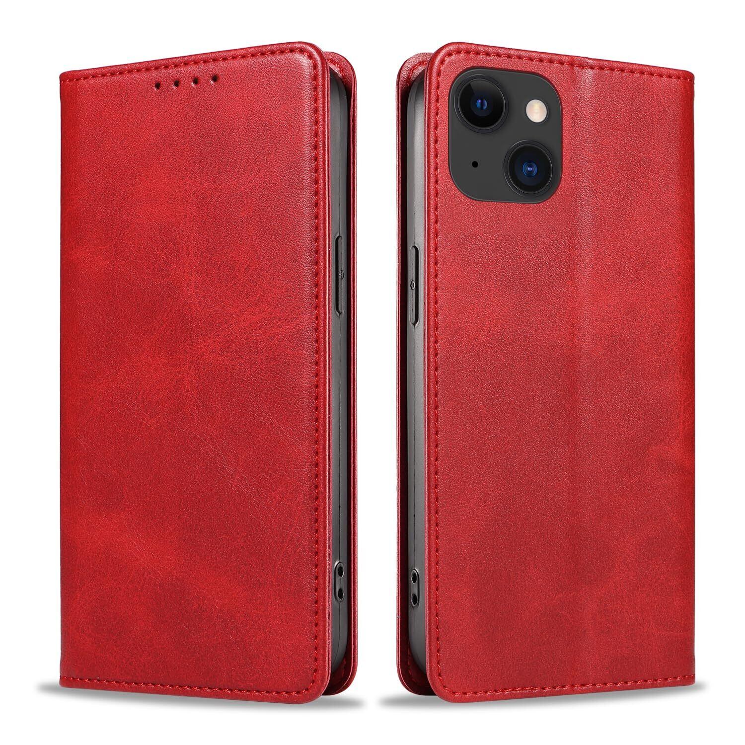 iPhone15 ケース アイフォン15 スマホケース 手帳型 携帯カバー レザー 耐衝撃 軽量 着脱しやすい 放熱性 マグネット式 カード収納 スタンド機能ケース15 対応 360度保護 PinLiSheng (レッド, iPhone 15)