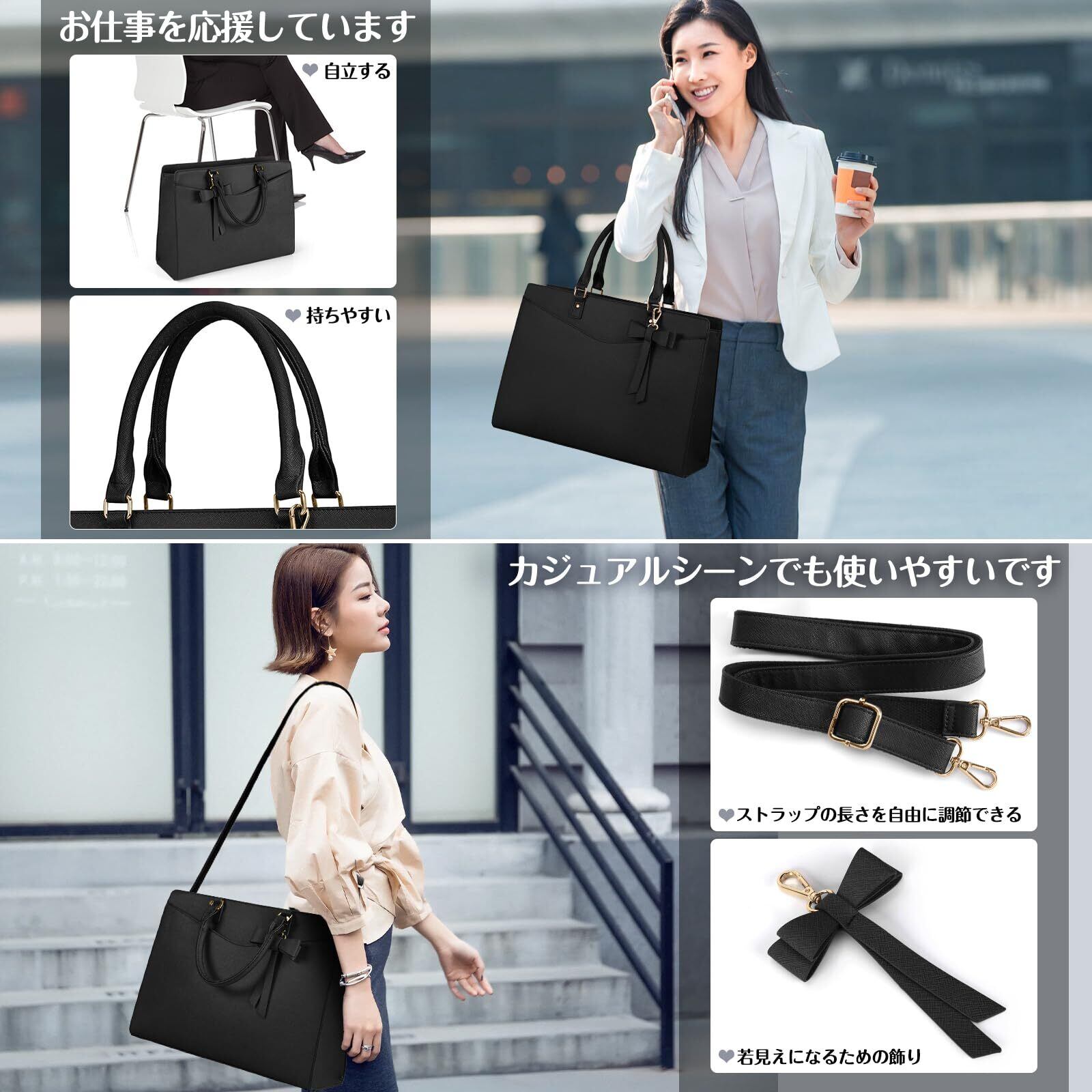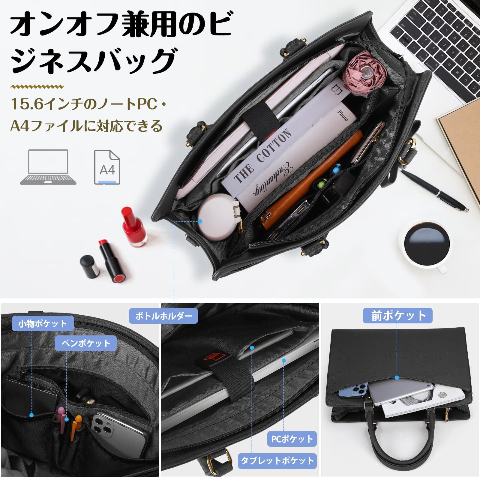 [RAINSMORE] トートバッグ レディース 通勤バッグ ビジネスバッグ 大容量 自立 a4対応 15.6インチpc対応 2way 肩掛け ファスナー付き 複数ポケット 仕事用バッグ 就活 通勤 オフィス ブラック