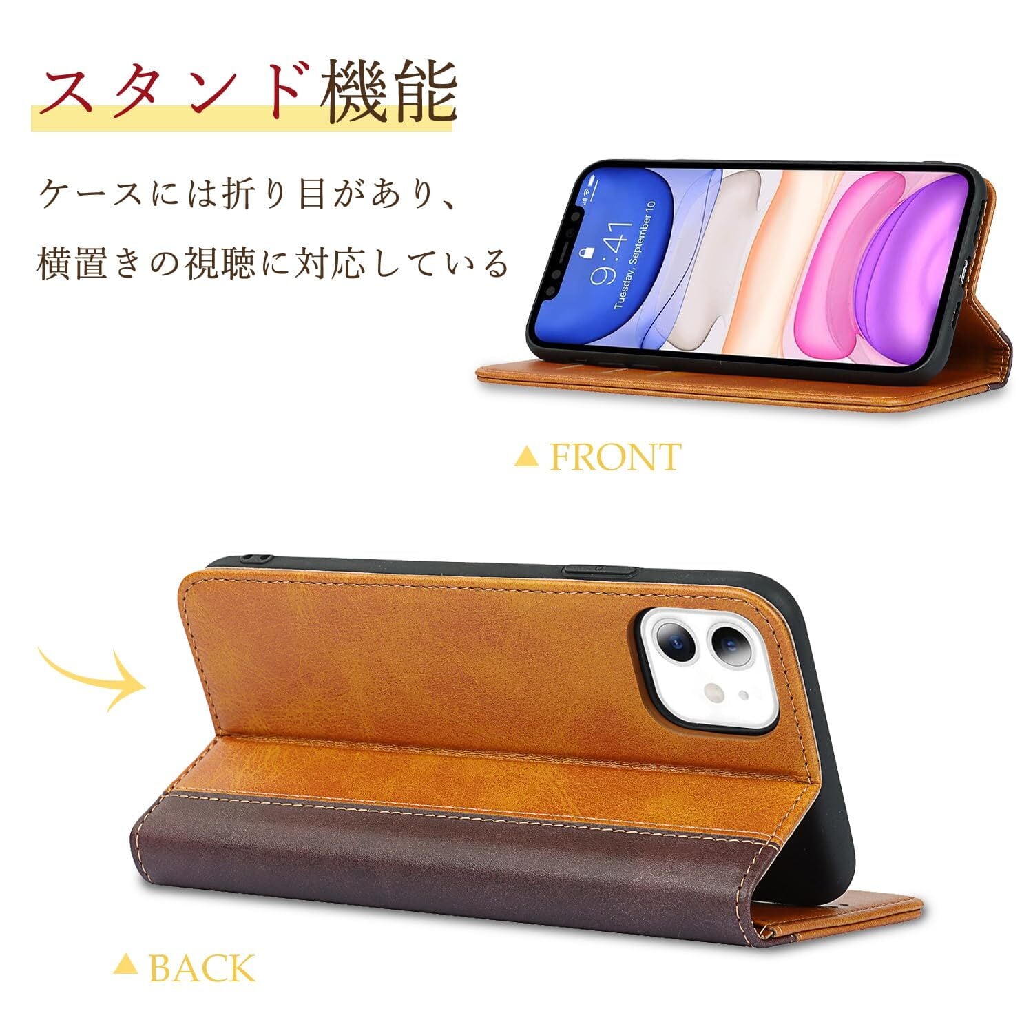 Havaya iPhone11ケース iphone 11 ケース アイフォン11 ケース 手帳型 耐衝撃 カバー マグネット カード収納(アイフォン11 /あいふぉん11/いphone11/アイホン11 6.1インチ対応)-イエロー+ブラウン