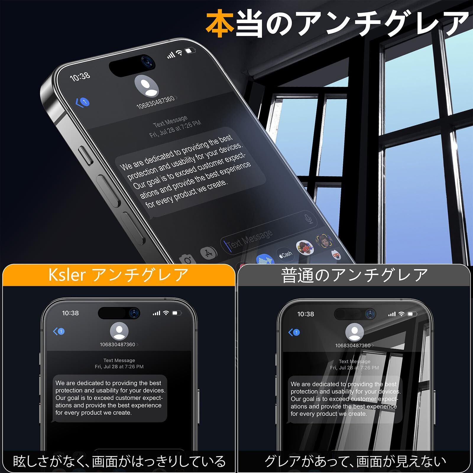 Ksleri アンチグレア iPhone 15 Pro対応 ガラスフィルム 液晶 保護フィルム ガイド枠付き さらさら ゲームフィルム 指紋防止 反射防止 高硬度9H