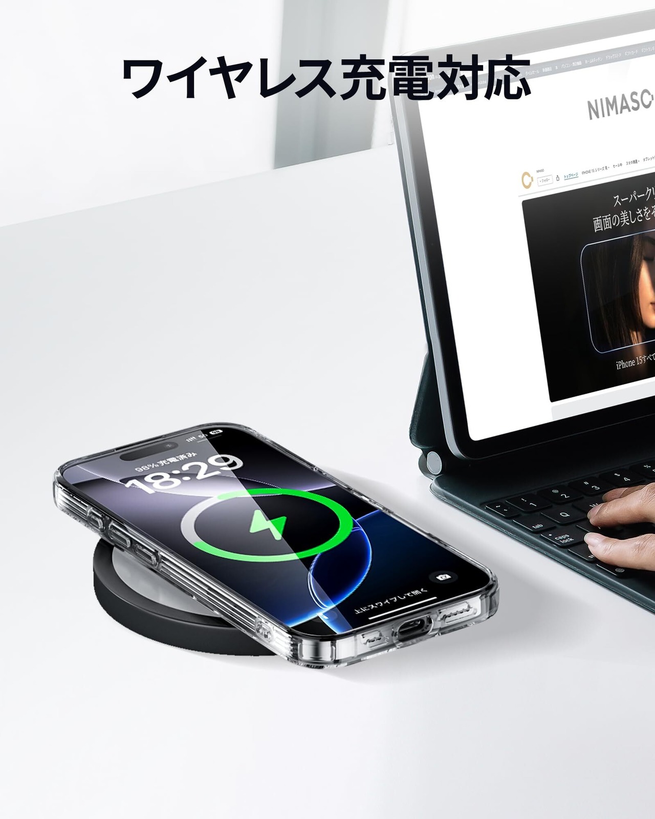 【ワイヤレス充電対応】薄型で軽量の仕様。ケースを装着したままワイヤレス充電ができる。精巧なカットアウトによって、ボタン操作も快適です。(本製品はMagSafe機能が付いていないので、MagSafe充電器を使う場合、iPhoneケースに磁力がないため、ピタッとくっつかない事がございますので、ご注意ください。)