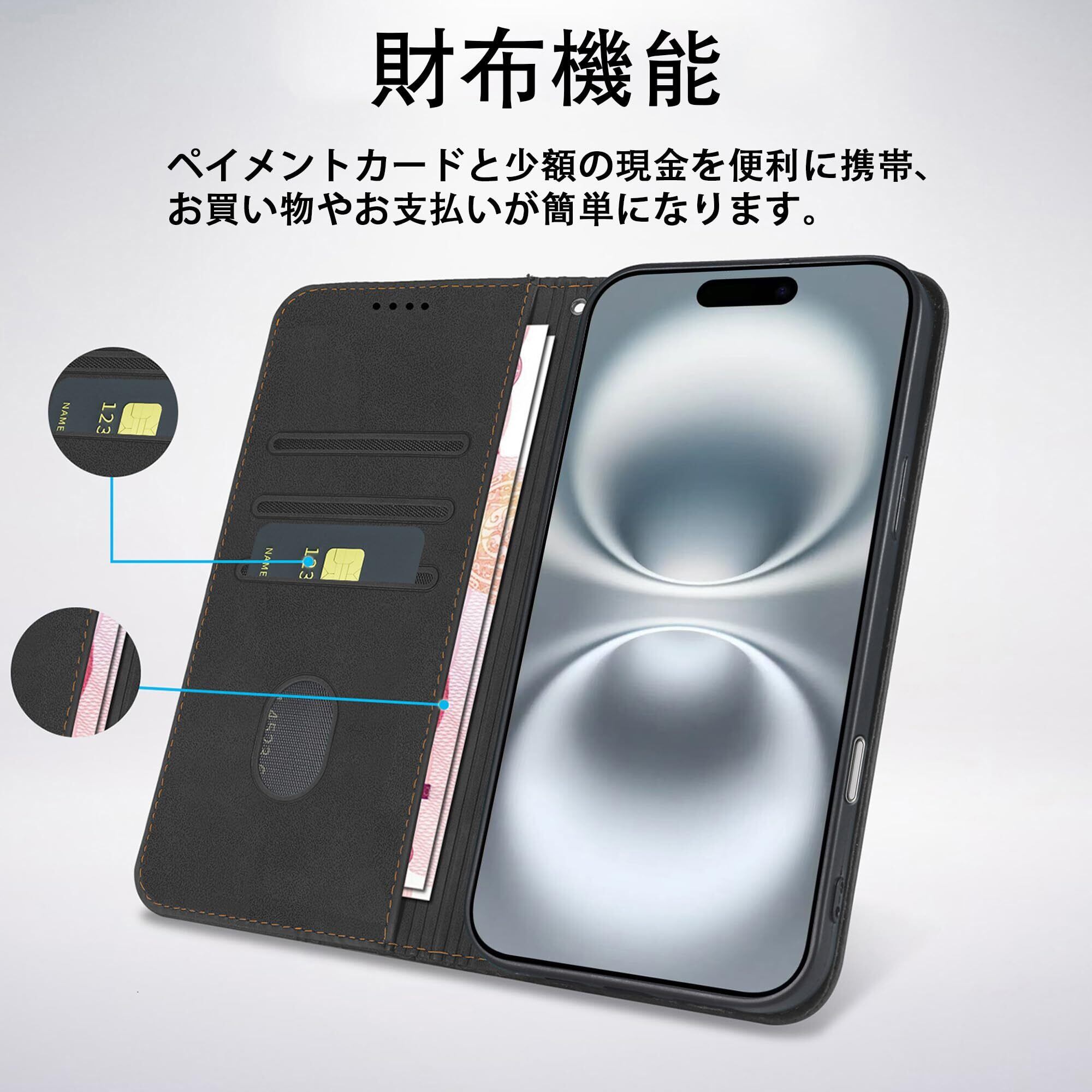 【高品質の素材】iPhone16 保護ケースシェルは高品質なPU合成皮革を使用し、シンプルな外観とパターンで、効果的に摩擦を増加させます。 インナーシェルはソフトなTPU素材で、手触りがよく、取り外しも簡単です。 ケース全体が偶発的な衝撃による損傷から携帯電話を効果的に保護します。