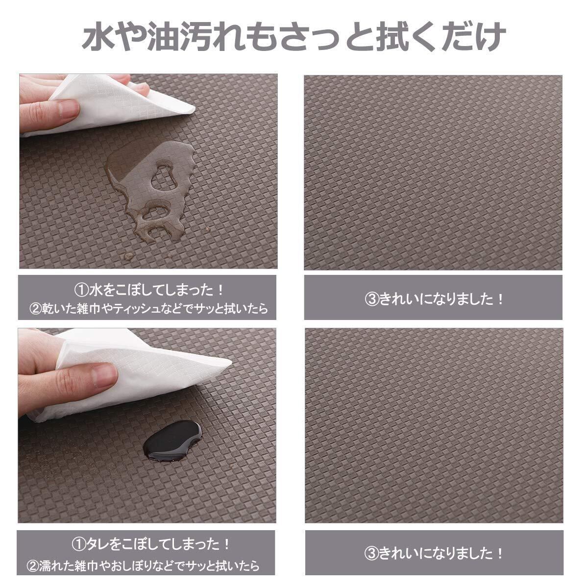 【衝撃緩和】柔軟性のいい材質を使用しているし、7mm低反発ウレタン入りで適度なクッション性を備えています。踏み心地がよく、足裏にかかる体重を分散し、調理の時、足腰の疲労を和らげることができ、長時間の家事をしても快適です。お皿など落としても衝撃を緩和することができます。