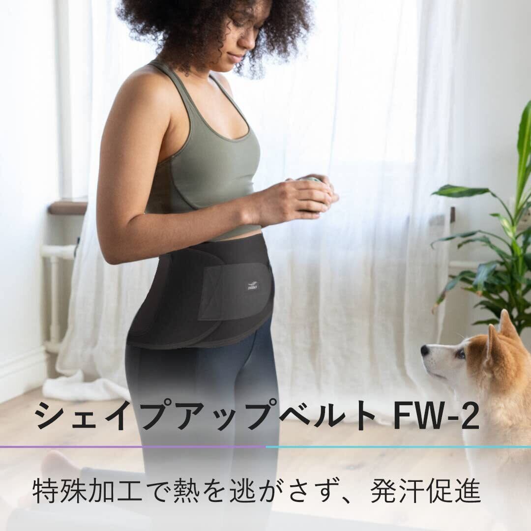 【FiCOLY シェイプアップベルト FW-2】着用によりサウナのような保温状態を作り出し、エクササイズによる発汗を促す、ウエスト用サウナベルトです。外気を遮断するネオプレン、さらに内側には、高い気密性で熱を逃がしにくい、ポリウレタンコーティングを施しました。シェイプアップやダイエットのための運動など、トレーニングにおける効率良い発汗のサポートとしてお使いいただけます。スマホや携帯音楽プレーヤーを収納できるポケット付きです。