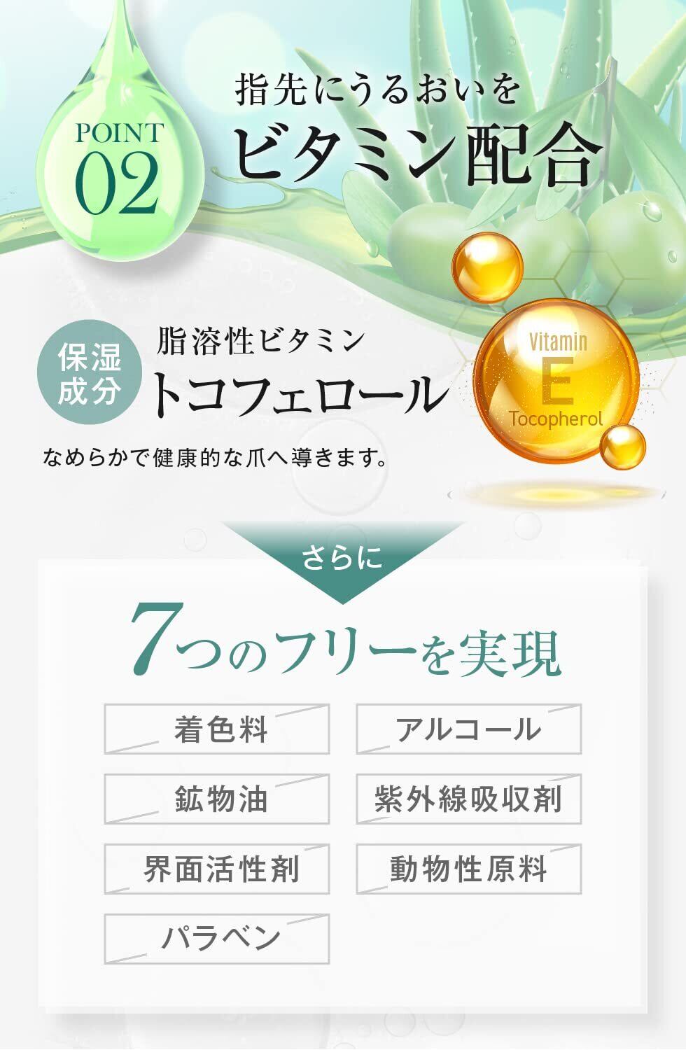 使用方法:爪の根元や裏側にブラシ部分で直接塗布し、爪や指先になじませてください。