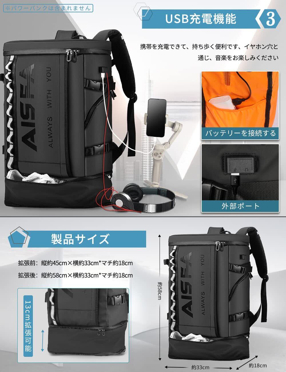[AOSLE] リュック メンズ リュック 大容量 通気性 ビジネス リュック バックパック 底部拡張30-35L 反射ストリップ付き 15.6インチ PCラップトップ USB充電ポート付き 旅行 修学 防災 防水 登山 通勤 多機能 A4収納 靴/弁当収納