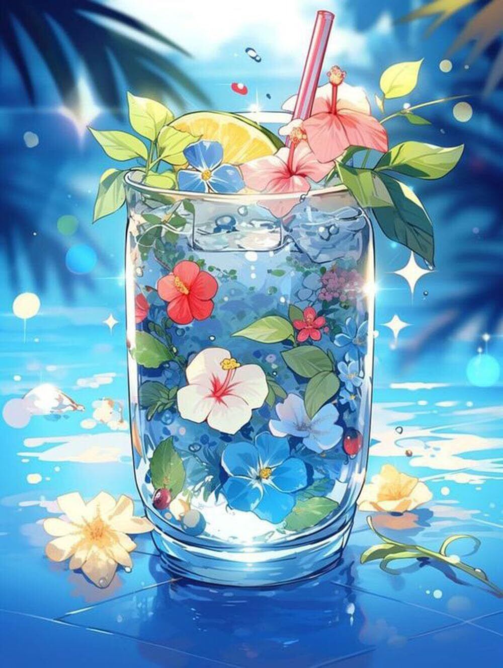LEADINTOP ダイヤモンドアート 夏 カップ 丸いビーズ 30X40cm ダイヤモンドペインティング キット モザイクアート 人気 ビーズアート かわいい 初心者 大人 子供 DIY 手作り 手芸キット プレゼント 芸術品 装飾