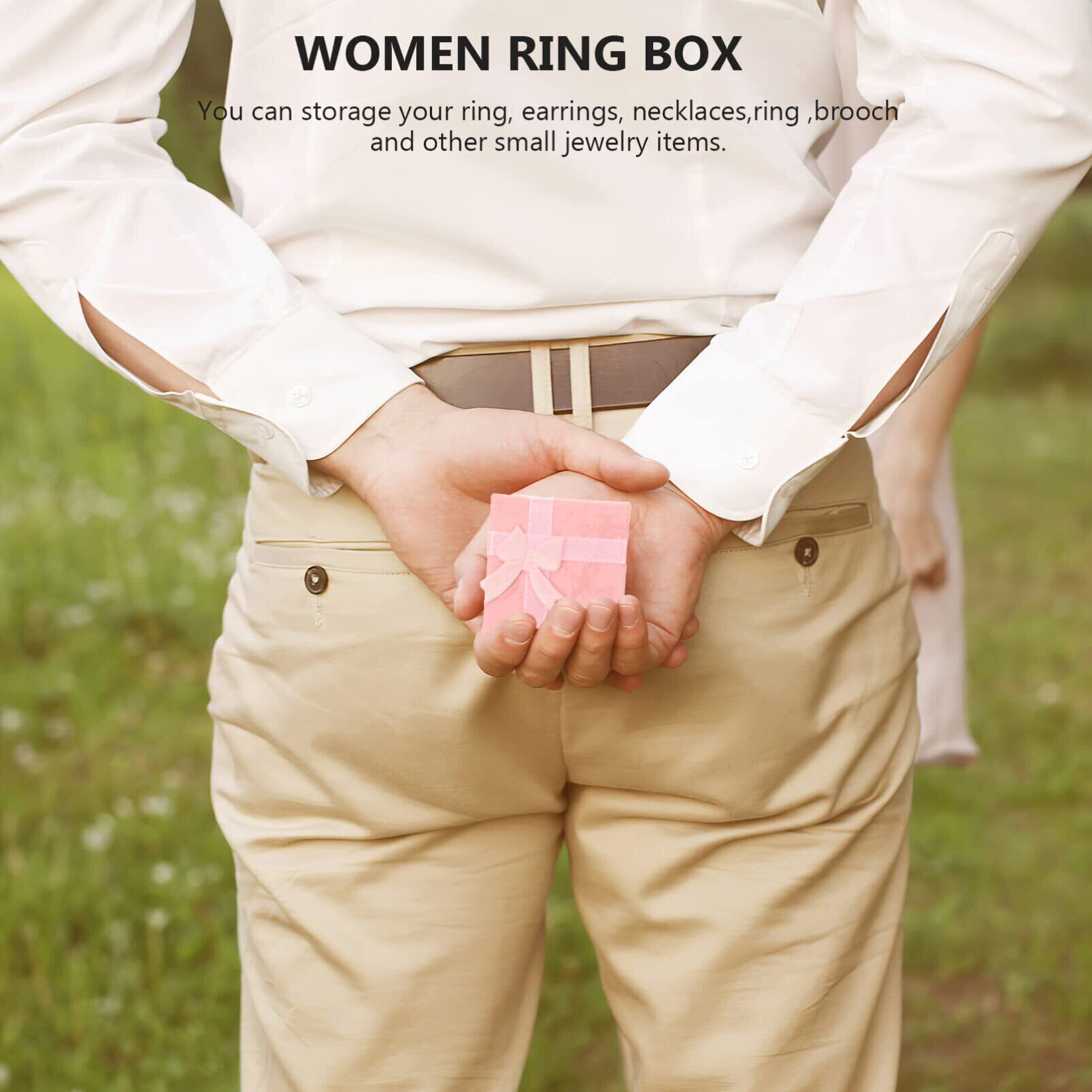 Frcolor リングボックス 16個セット ギフトボックス 蝶結び 指輪ケース ピンク 正方形 ピアス ラッピング アクセサリー紙箱 アクセサリーケース リング 小物 ジュエリー収納 ギフトボックス