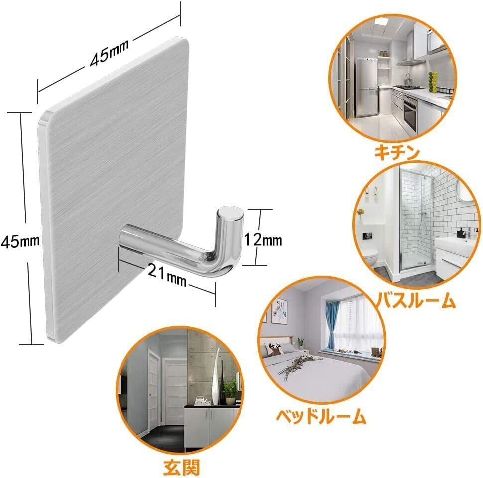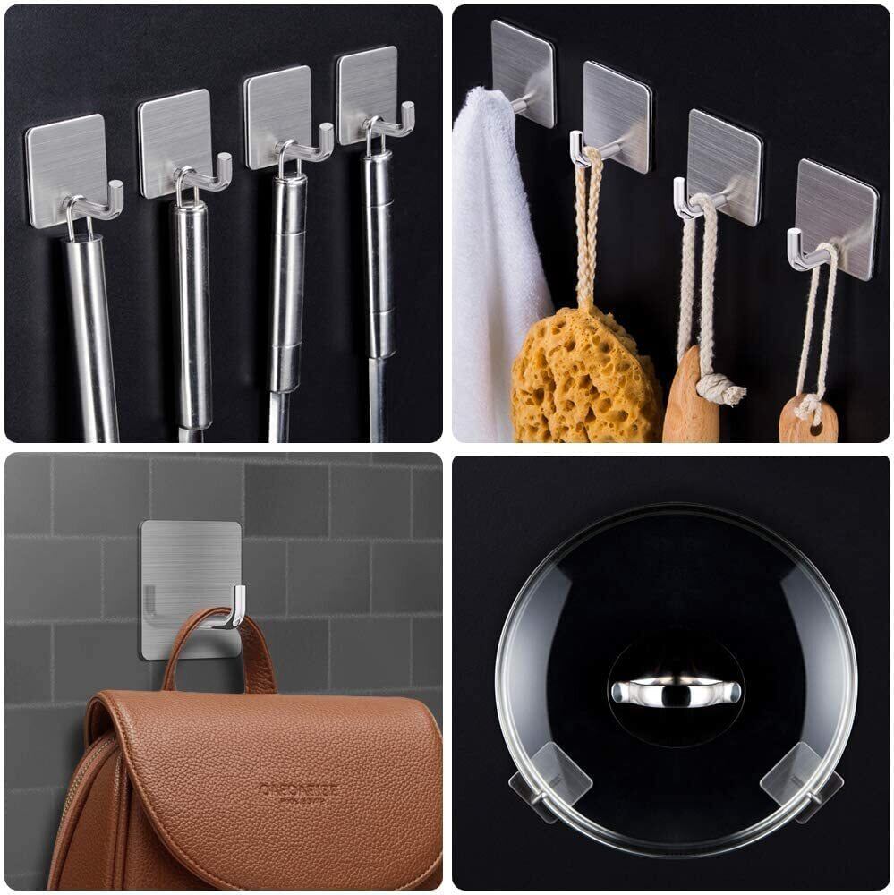 Ninonly 壁掛けフック 強力8個入り 粘着フック 90度フック部設計 ステンレス製 高耐荷重 壁を傷つけない キッチン/玄関/洗面所/オフィス用 フック