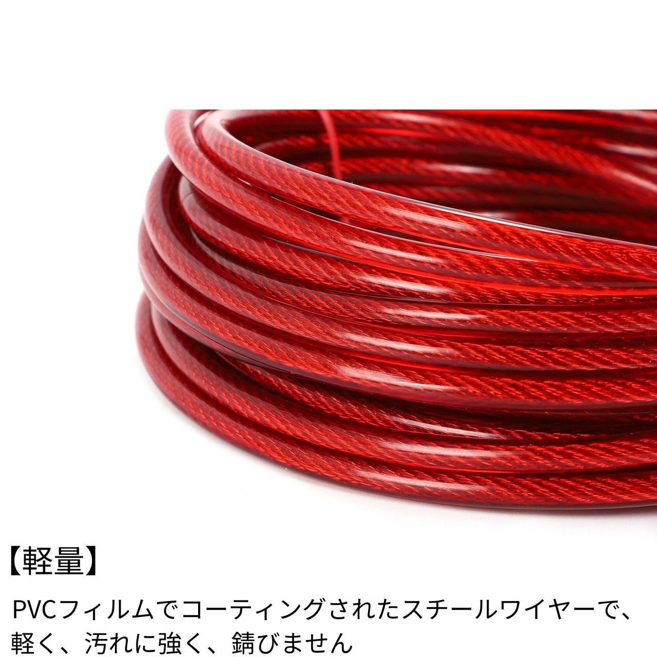 【軽量】スチールワイヤーにPVCフィルムでコーティングを施しているため、軽量で持ち運びに便利です。また、汚れに強く錆びにくいので、メンテナンスも簡単です。