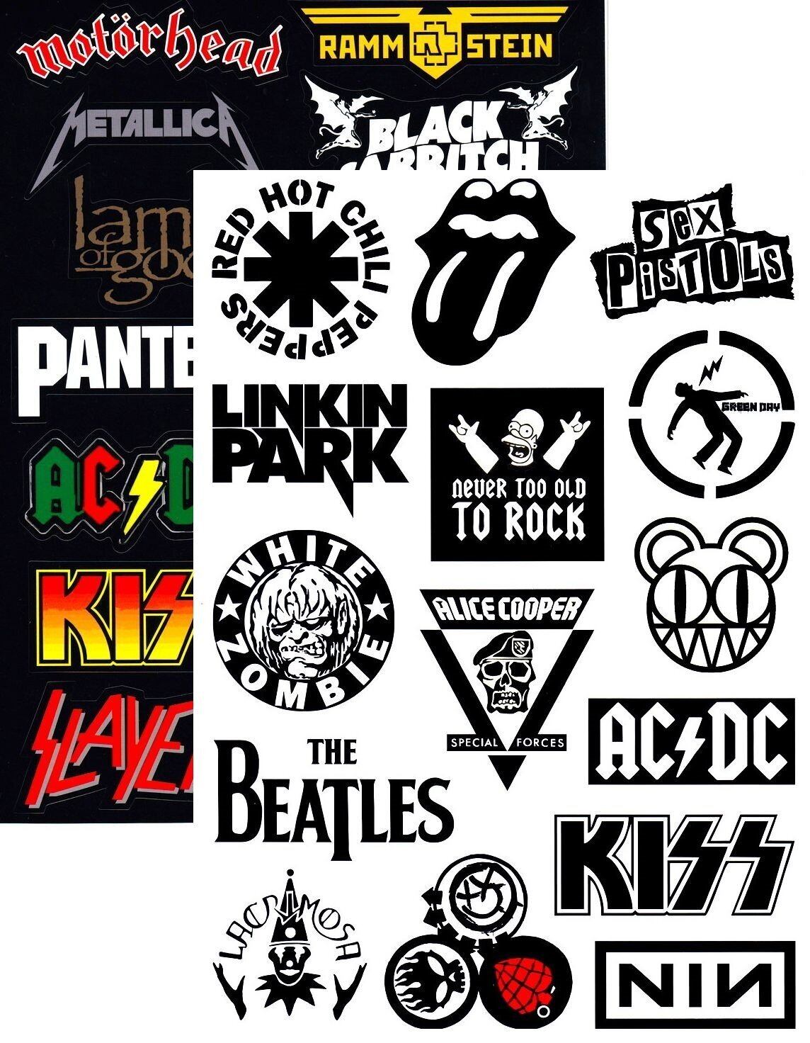 【ギター・楽器・タブレット等のカスタマイズに!】 ロック・ポップス・メタル 系 洋楽 音楽 バンド ステッカー 艶あり・防水加工・型切り出しシール (カラー・モノクロ 2シートセット)