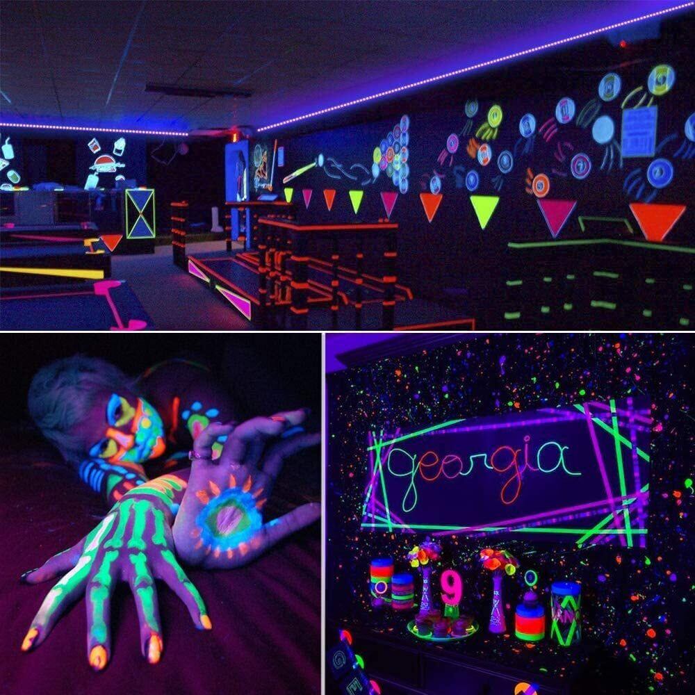 【多用途】ブラックライトは、ショーやパーティーで素晴らしい雰囲気を作り出し、家のデコレーション、パーティー、ギャラリー、特に暗闇でのグロー活動、蛍光ボディペイント、天井の装飾、紙幣のテストなどに最適です。