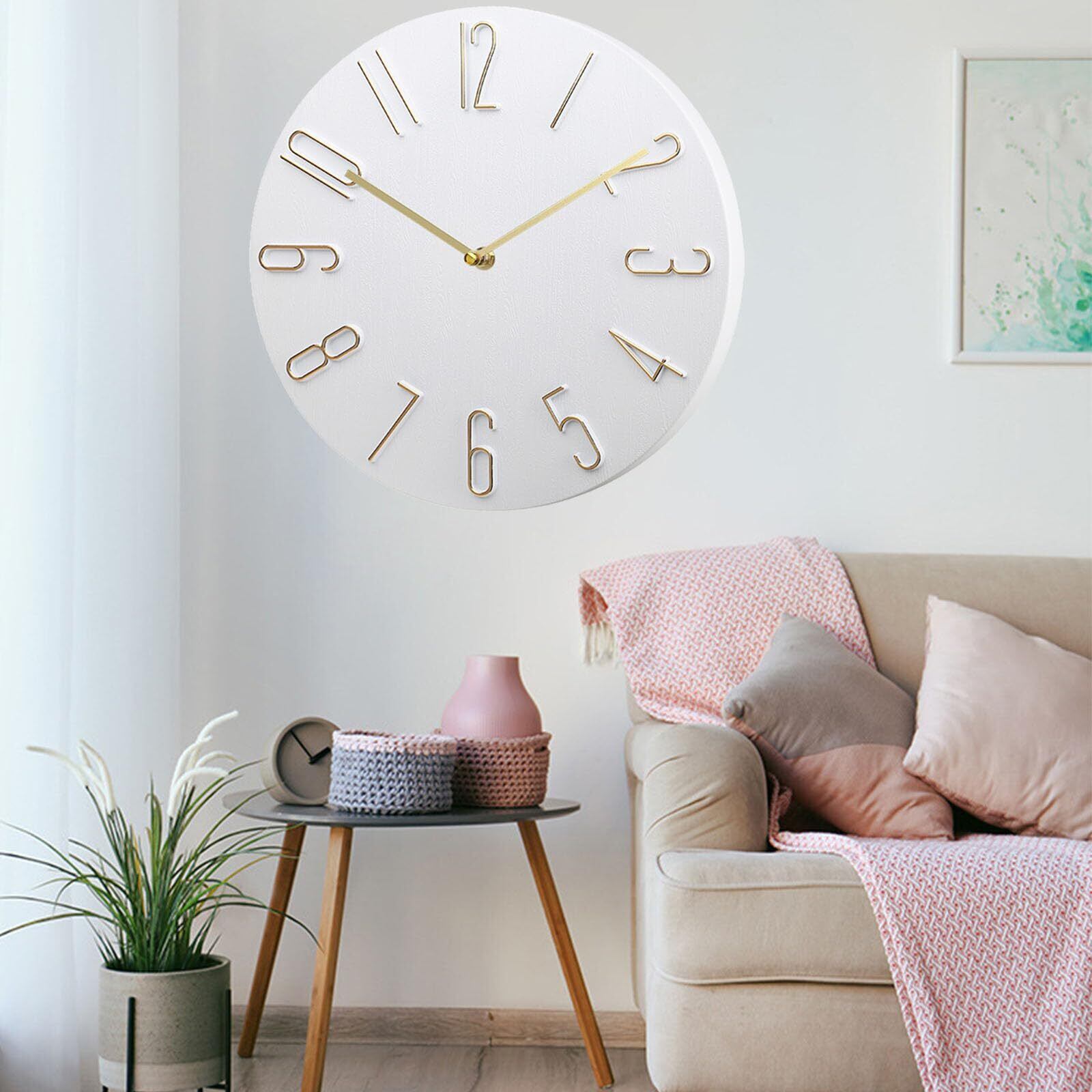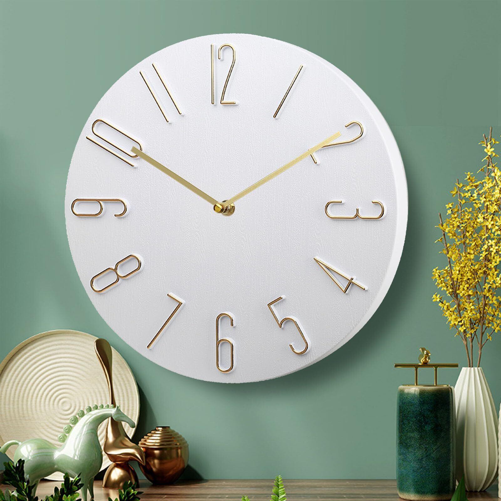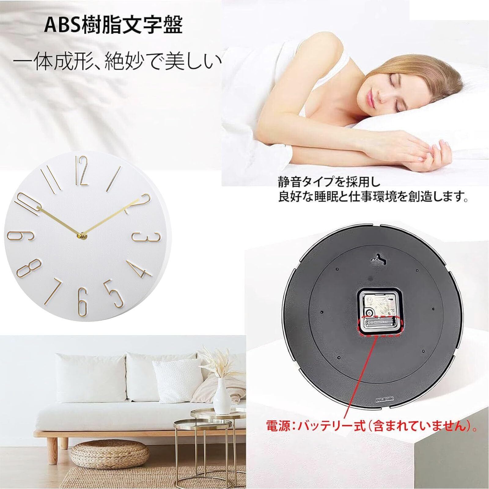北欧風静音タイプの掛け時計、大きくてクリアな3Dアラビア数字で、お部屋の隅から見やすいです。