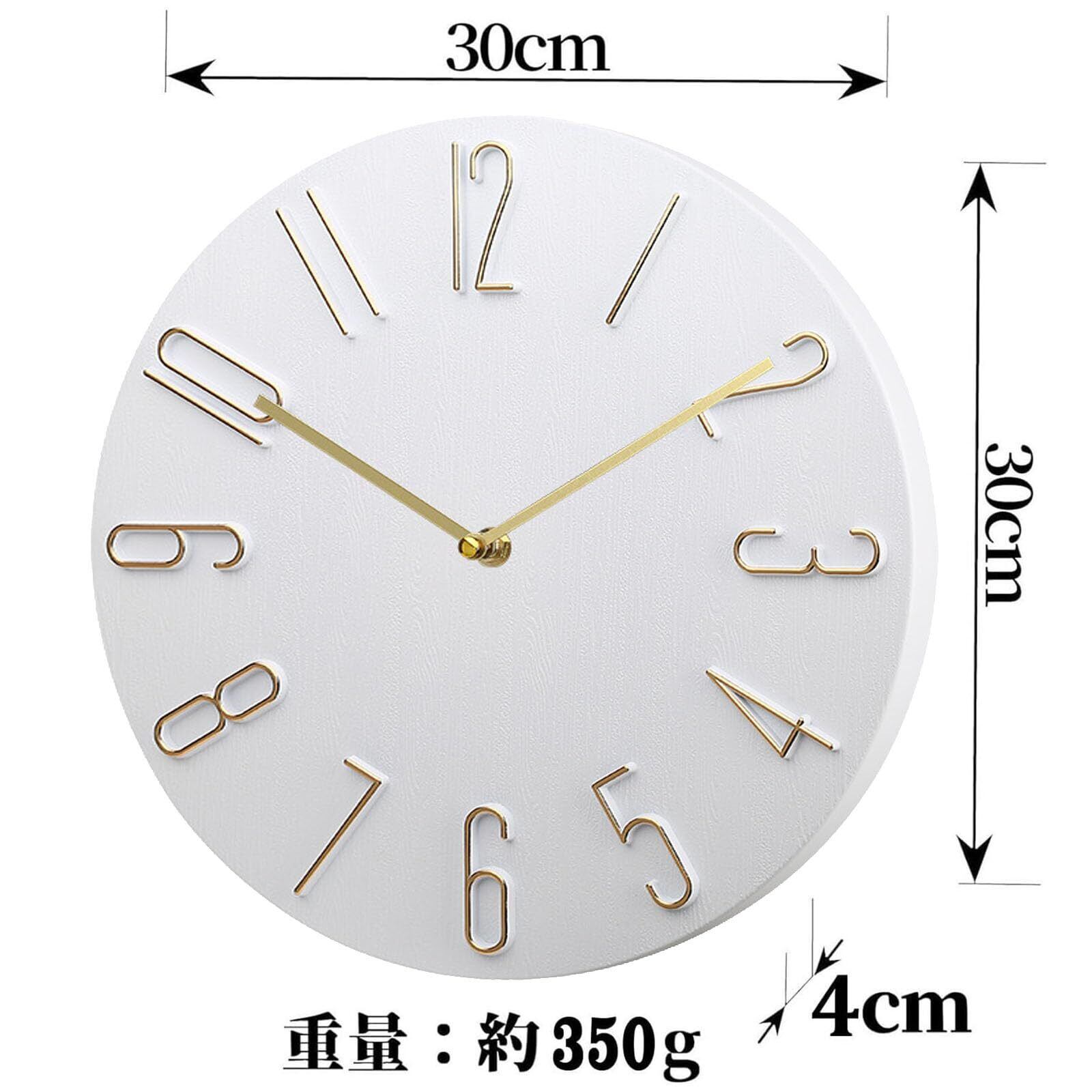 【商品仕様】 サイズ:直径30cm。本体重量:約0.35kg。 文字盤材質:ABS樹脂。針材質:メタル 。電源:バッテリー式(含まれていません)。