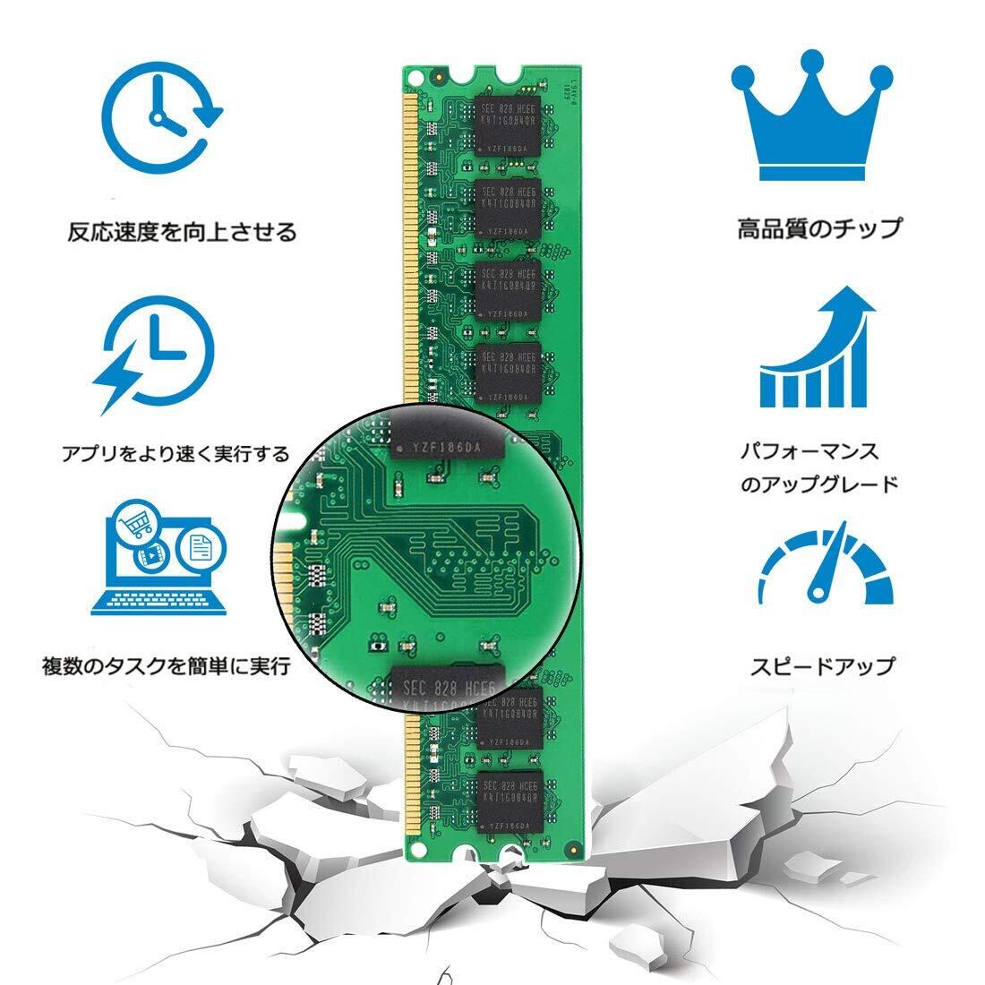 DDR2 800 PC2-6400 4GB (2GB×2枚) デスクトップPC用 メモリ2Rx8 1.8V 240 Pin CL6 Non-ECC DIMM 対応
