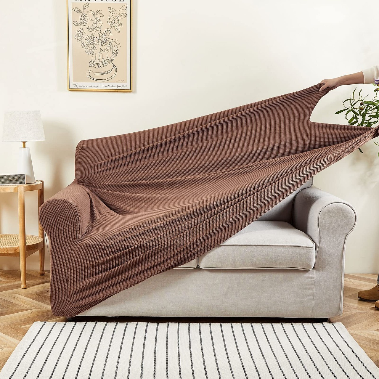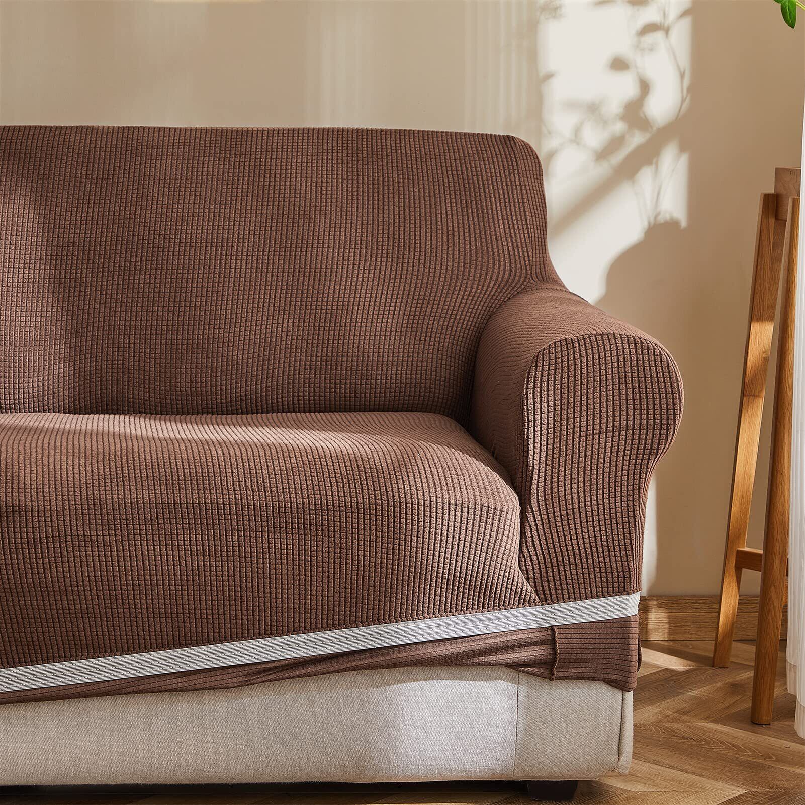Topfinel ソファーカバー 3人掛け 肘付き 無地 北欧風 ストレッチ フィットタイプ 伸縮素材伸び良く 滑り止め 柔らかい 犬 猫 傷 防止 超便利 四季適用(ブラウン)