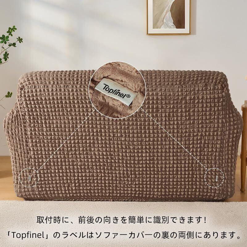 一人でも簡単に取り付け:下側には一周する幅広ゴムがついており、伸縮性、耐久性、滑り止め効果に優れています。背面両側にはラベルが付いていて、取付時に前後の向きを簡単に確認できます。ソファを持ち上げる必要がないので、女性一人でも簡単に取り付けが可能です!簡単に取り外して洗えるので、ソファをいつも清潔に保てます。