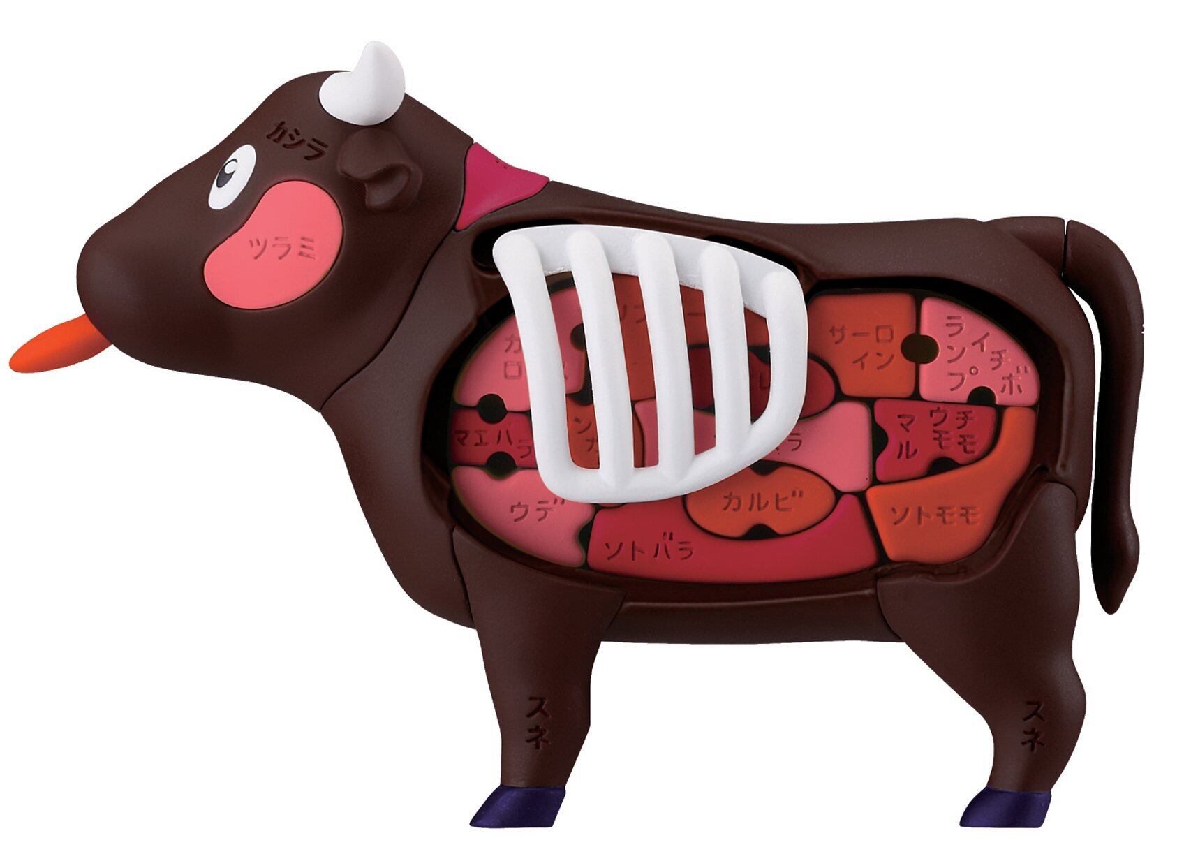 遊びながら肉、ホルモンの部位を学べるパズルが登場!パーツは全37パーツで、2重構造!手の温度で肉パーツの色が変わるカラーチェンジモデル。手で焼肉できちゃう!?付属のお皿型の台座シートに乗せて飾ろう!