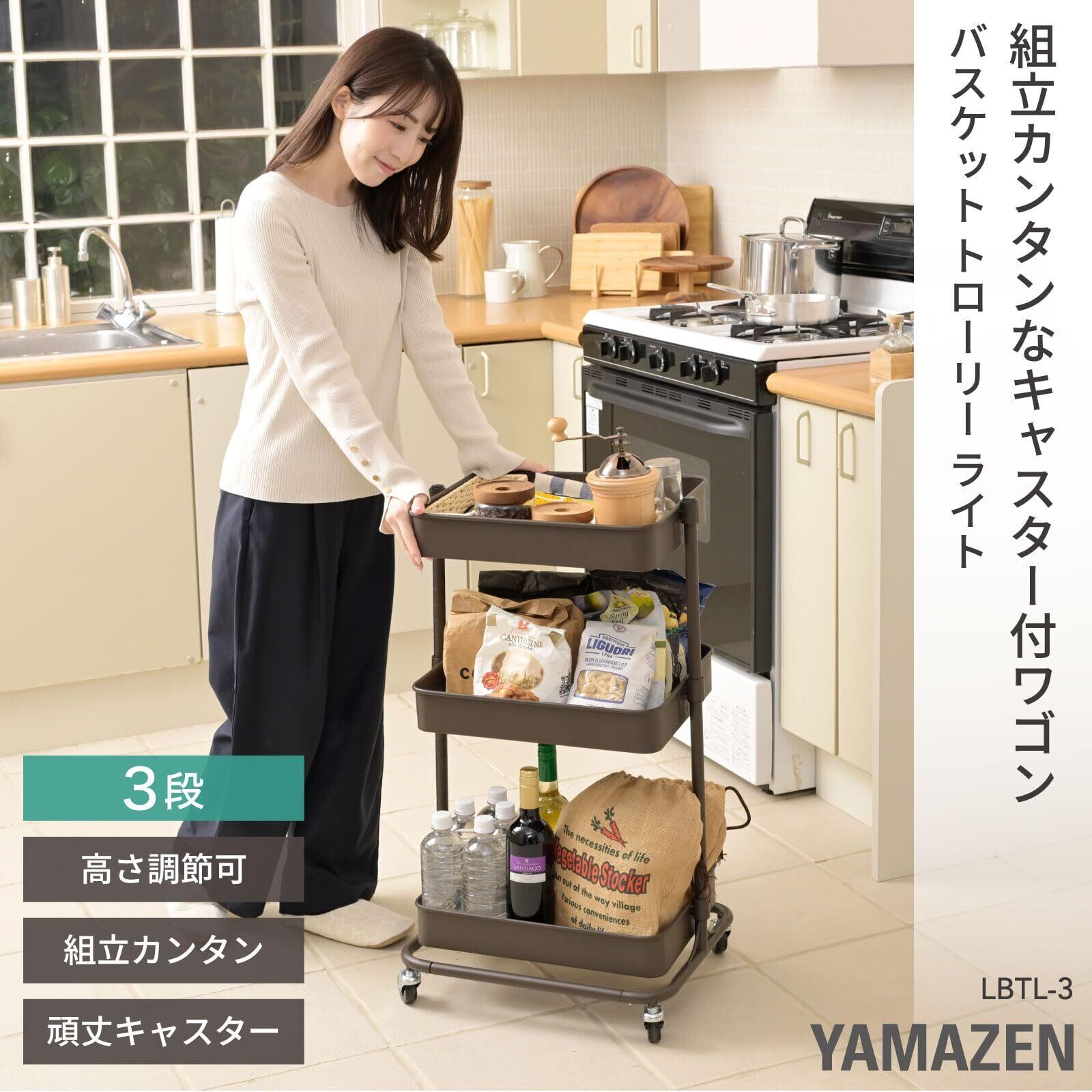 山善(YAMAZEN) キッチンワゴン キャスター付きワゴン 3段 バスケットトローリー メッシュタイプ 高さ調節可能 全体耐荷重30kg 幅45.5×奥行36×高さ81cm ワゴン キャスター付き 収納ワゴン キッチン 収納 組立品 ダークブラウン LBTL-3(DBR) | yankees