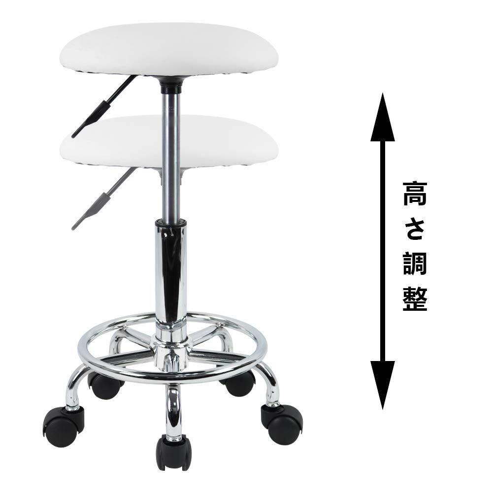 KKTONER PUレザー 丸椅子 キャスター 昇降スツール フットレスト付き 回転椅子 高さ調節可能 バーカウンター製図椅子 オフィスチェア ホワイト S サイズ (白)