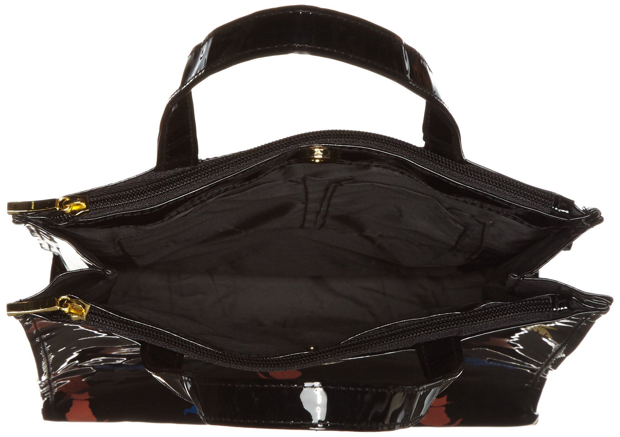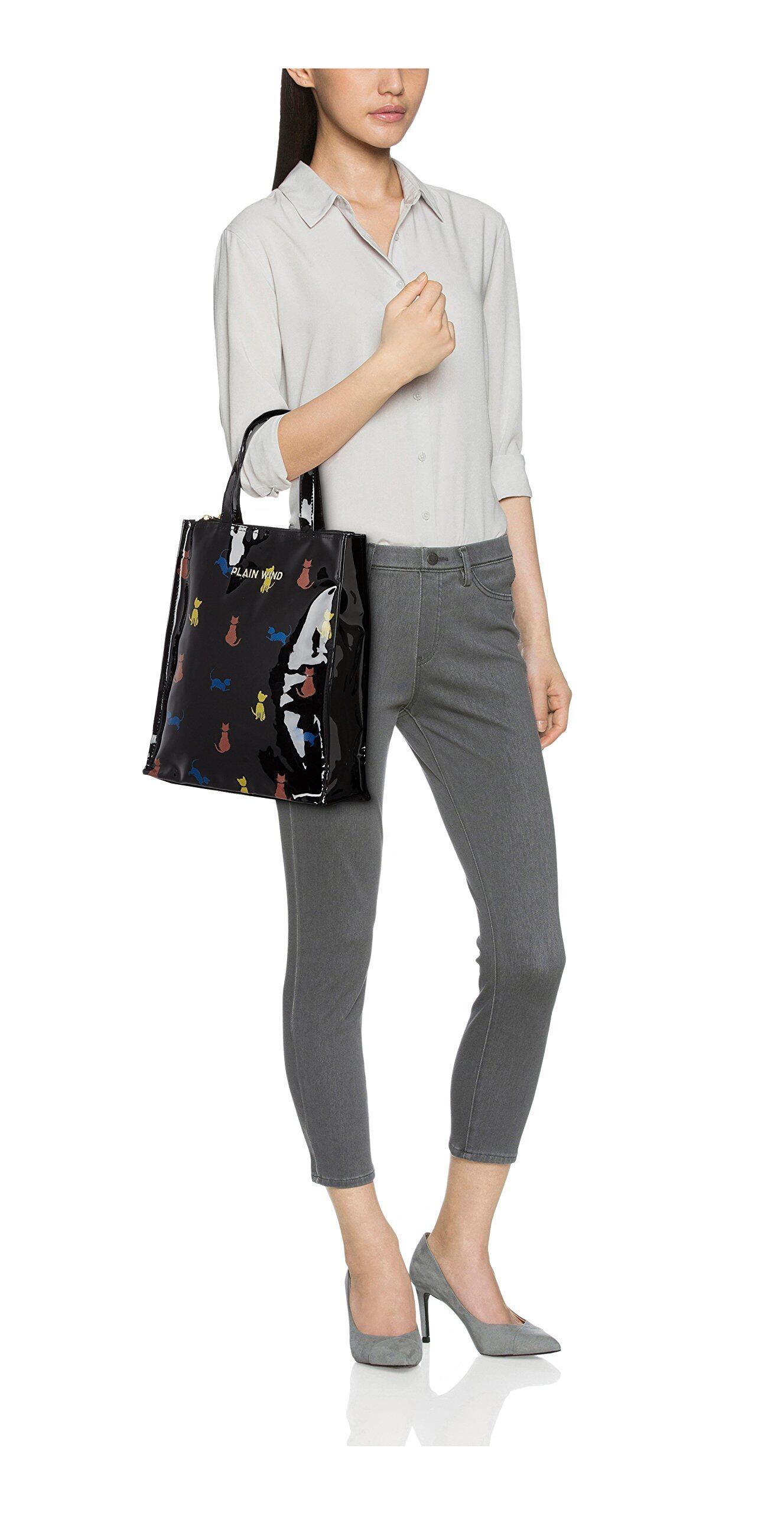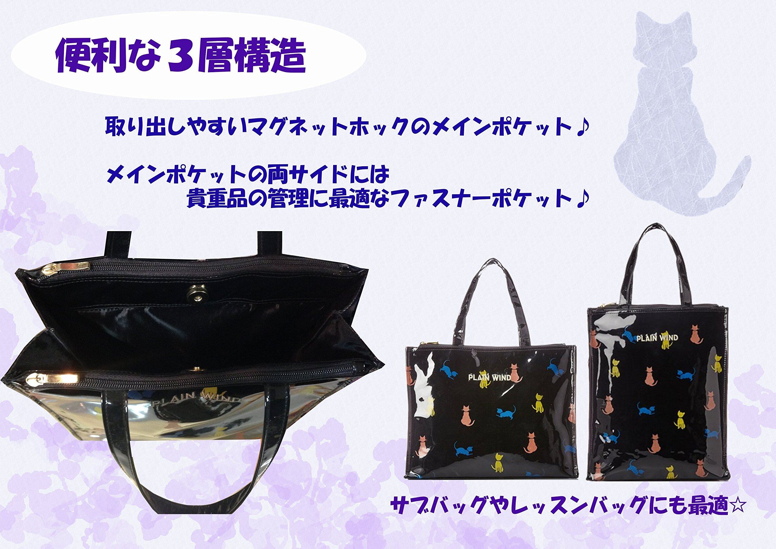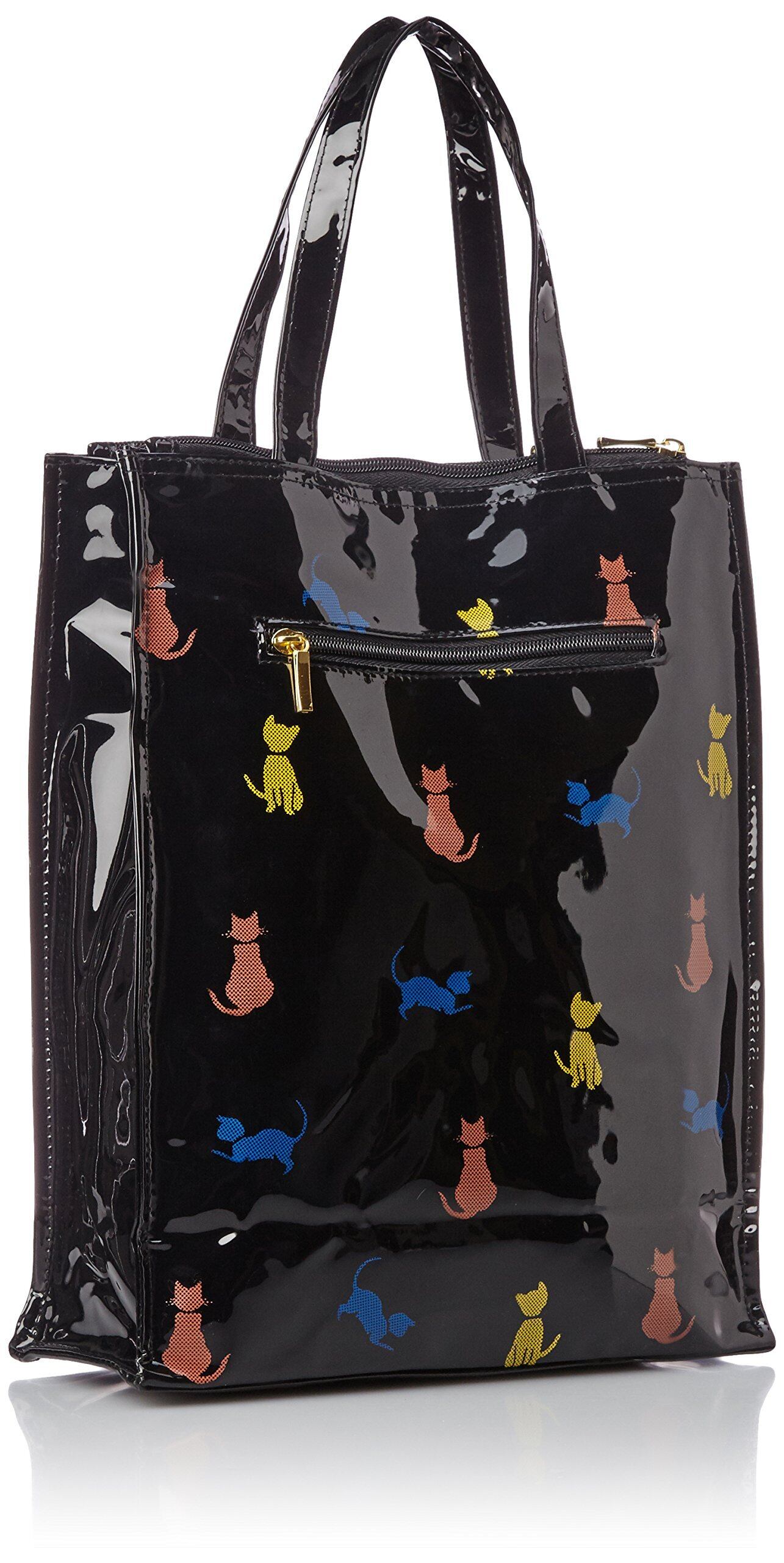 [オーエフエス] A4対応 合皮エナメル ネコ柄 縦型手提げバッグ 4708