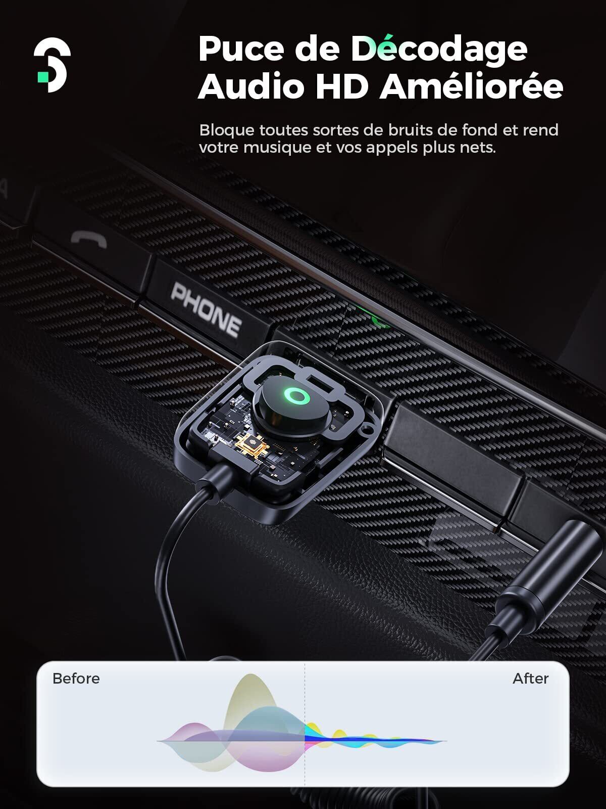 【簡単接続】USB-Aポートを給電USBデバイスに接続し、3.5mm AUXポートをオーディオデバイスに挿入し、電源を入れて自動的にペアリングモードに入ります。追加でドライブインストールなどは不要、電源不要。