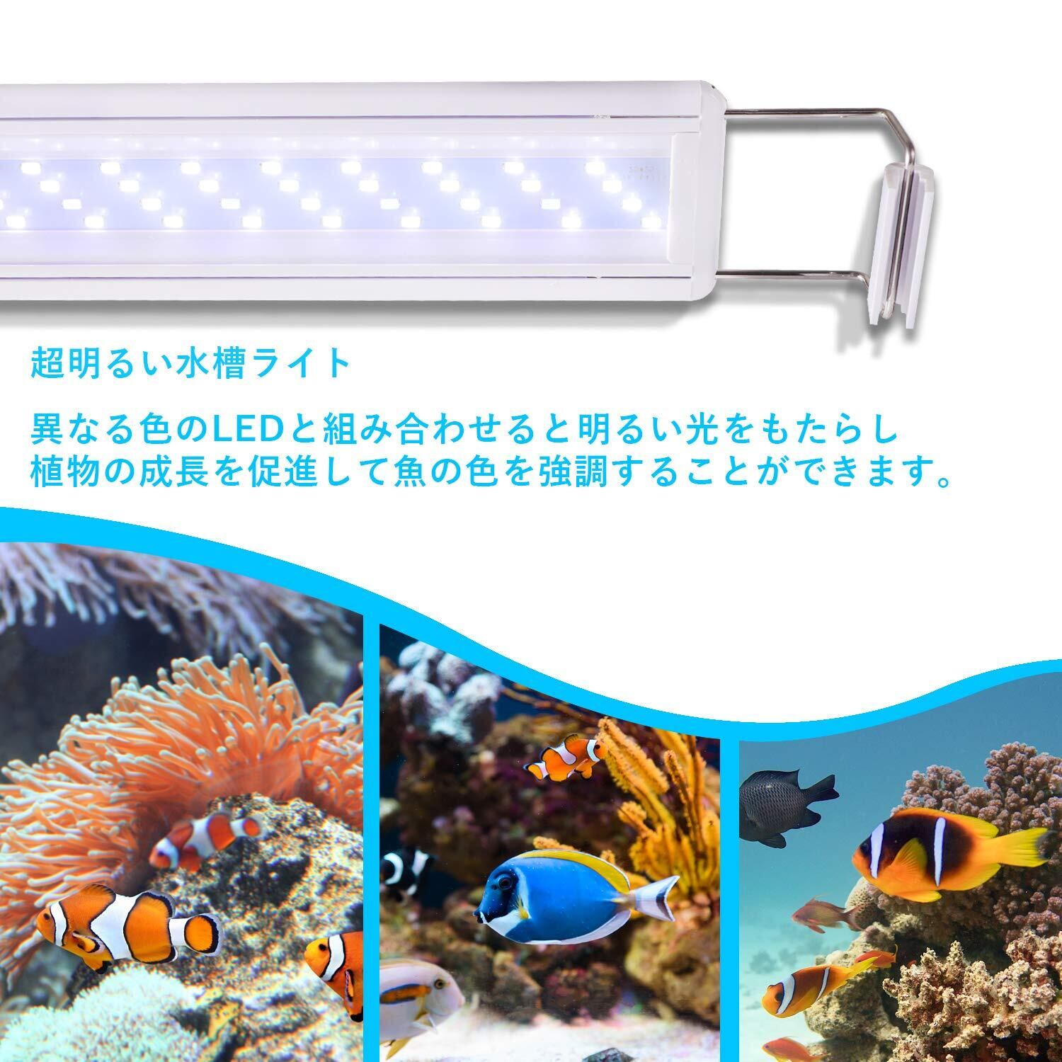 高品質な5730 LEDビーズが搭載し、水槽やアクアリウムはもちろん、水槽周りのものまで明るく照らせて、水草の緑や魚の色彩がアップ、癒し雰囲気を作成します。