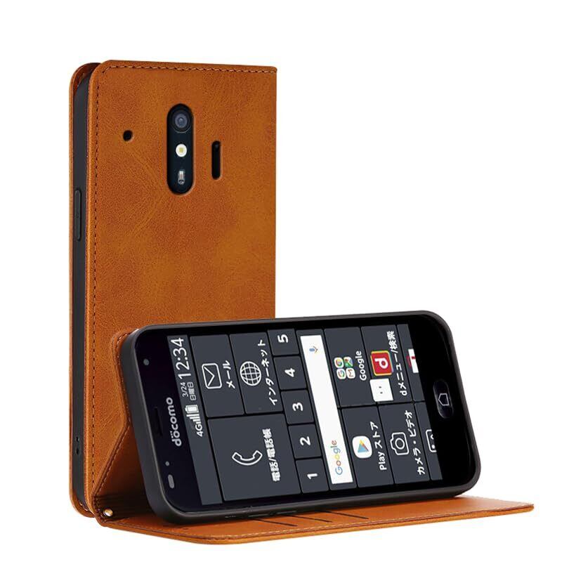 らくらくスマートフォン me F-01L / F-42A ケース 手帳型 カバー PUレザー カード収納 財布型 耐衝撃 ケース マグネット スタンド機能付き 5色 (ライトブラウン) | yankees