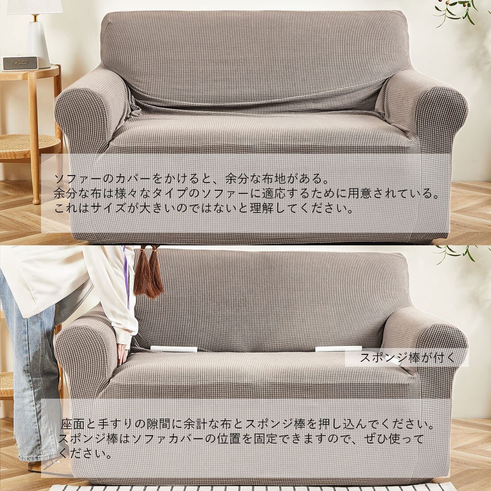 簡単着脱:ストレッチソファーカバーです。生地がグングン伸びて、簡単に着脱でき、肘付きソファーなど様々なソファーに適用です。滑り止め効果あります。女性一人でも簡単に取り付け可能です。