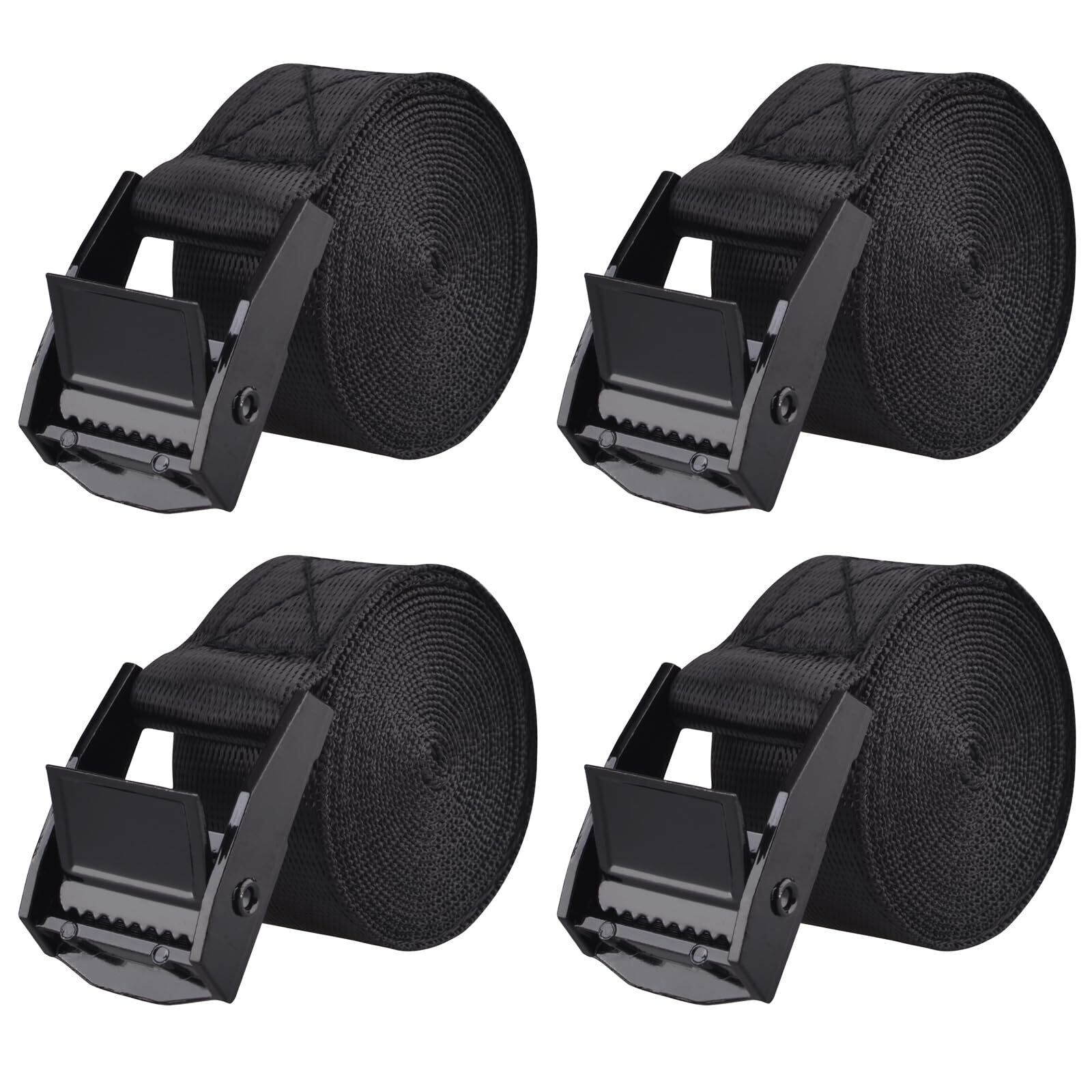 TRIWONDER 荷締めベルト 荷締バンド ラッシングベルト 多用途 固定ベルト タイダウンベルト 結束バンド 梱包 ベルト 固定バンド 荷締機 自動車ベルト バイクベルト Lashing Strap 地震対策グッズ (1# ブラック - 4本, 2m)