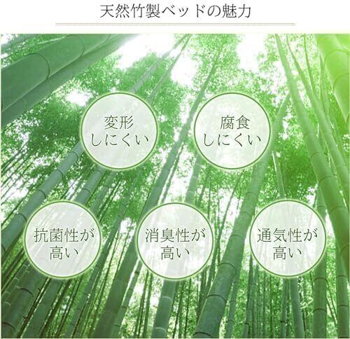 【天然竹製ベッドの魅力】竹製ベッドはお手入れ簡単で、竹に適切な表面処理を施せば、湿気や水にさらされても割れにくくなるので、汚れてもさっと拭くだけキレイになります。竹は老朽化しにくくて、使い込むほどに深まる味わいが出るので、使い捨てではなく、生涯家具として最適な素材です。