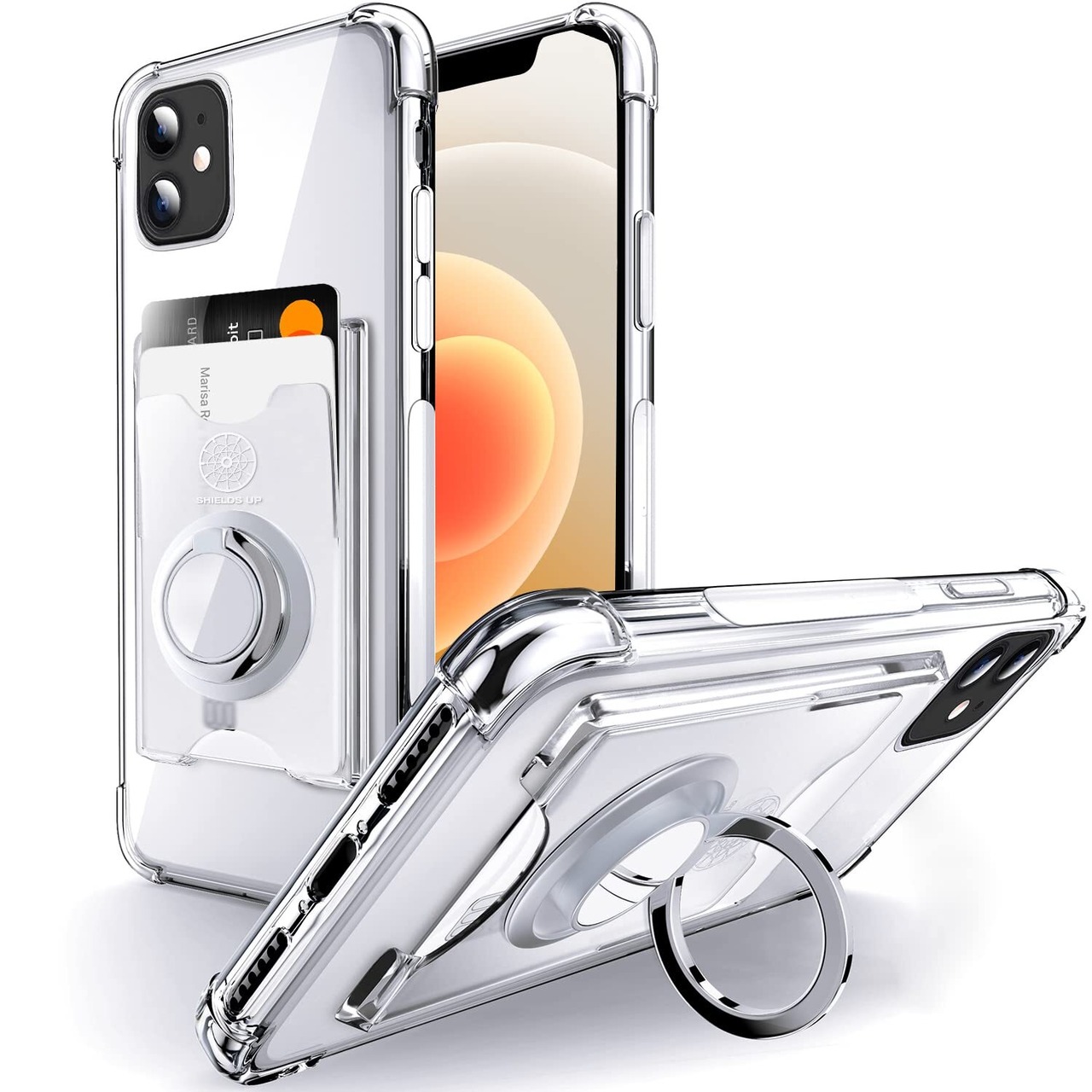 SHIELDS UP iPhone 12 用 ケース 12 Pro 用 ケース カード収納 背面ポケット リング付き スタンド機能 耐衝撃 透明 TPU スマホケース 6.1インチ アイフォン12Pro/12 用カバー - クリア | yankees