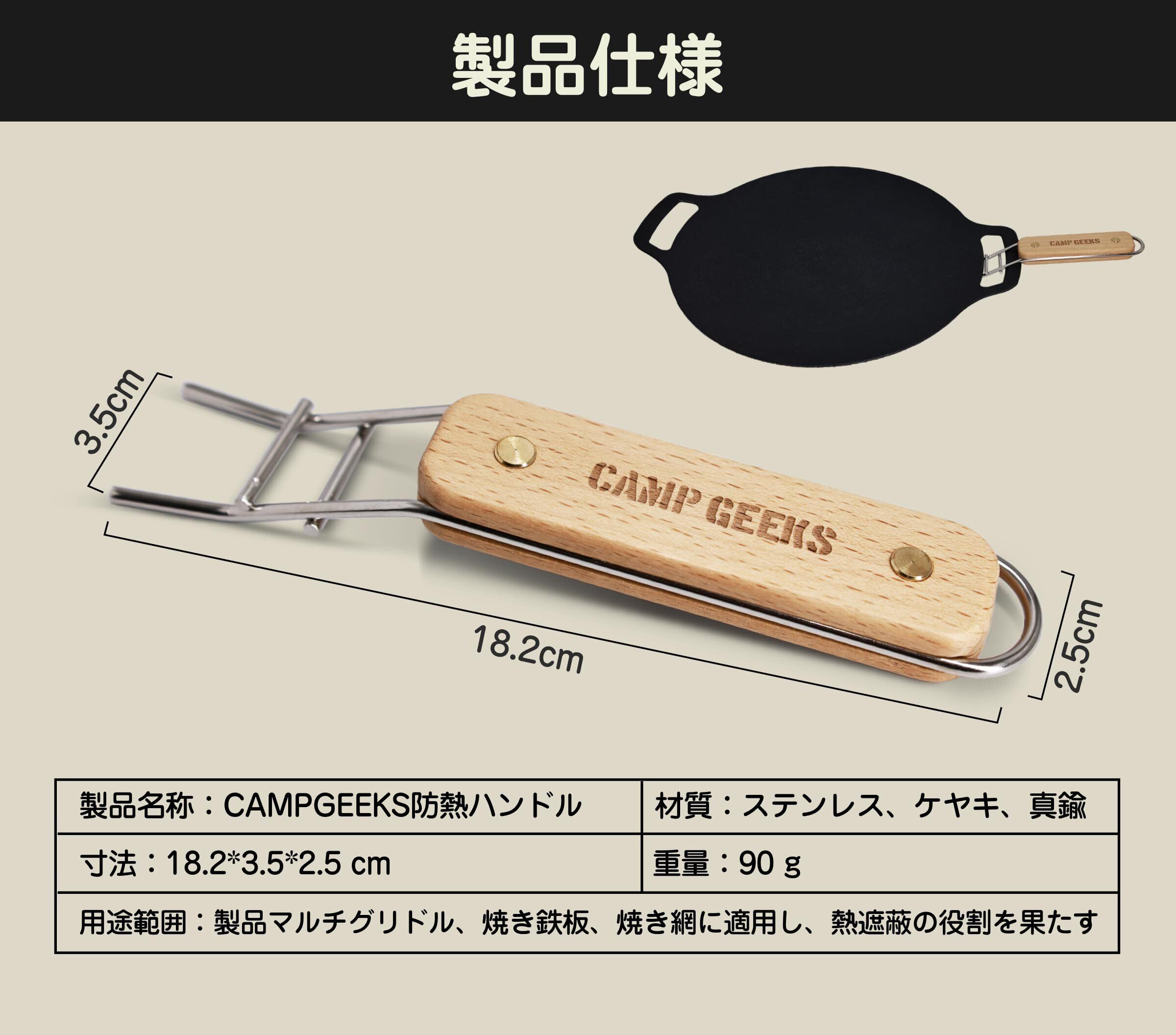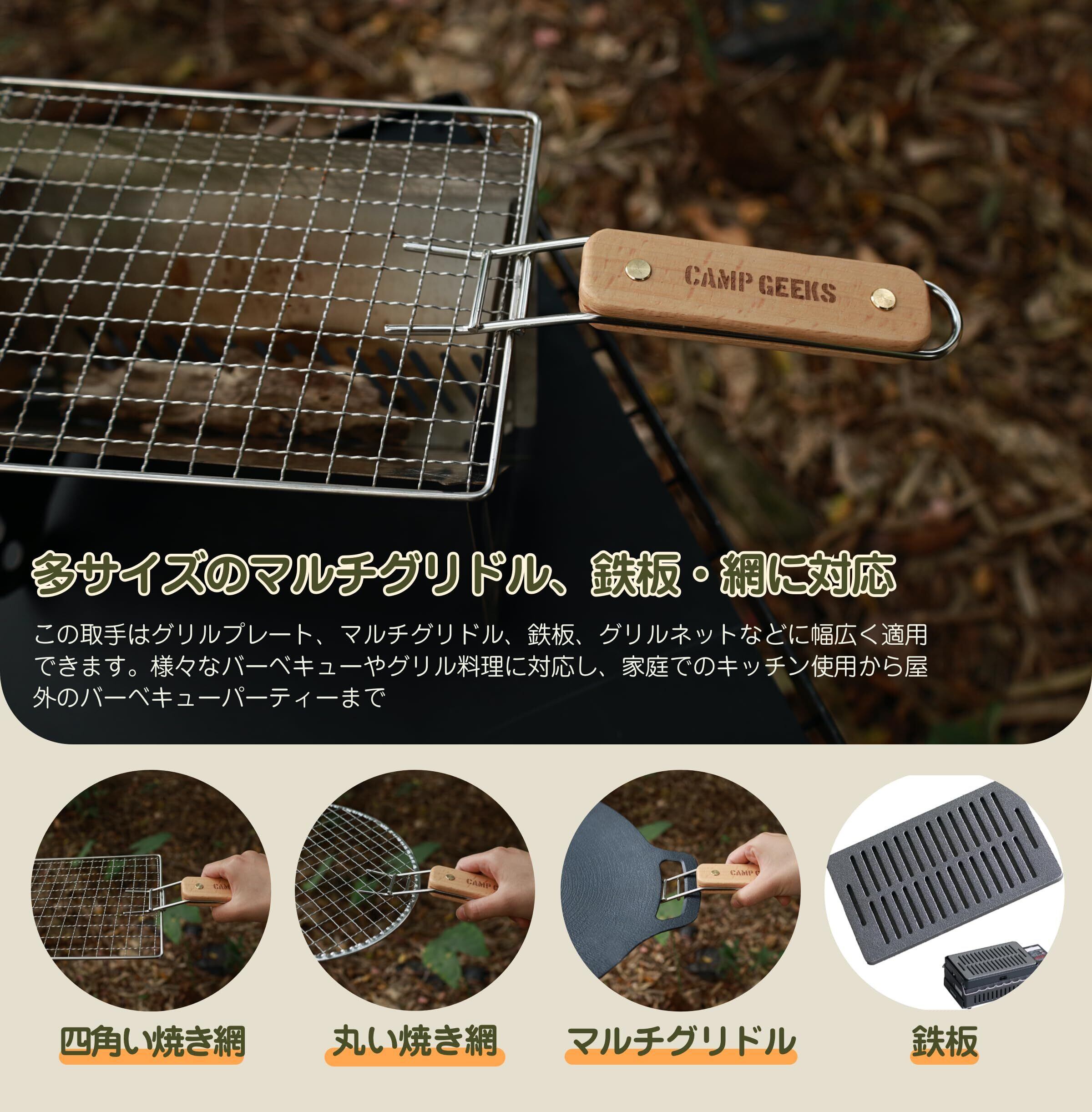 CAMPGEEKSマルチグリドル取っ手 アウトドア 鉄板・網 共通 取っ手/木製グリップ 鉄板 取っ手 バーベキュー・クッキング用品,火傷防止 取付簡単