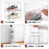 商品名:シューズケース(横型)・カラー:クリア・組立サイズ:(外寸)約36×28×22cm (内寸)約34×26×19.5cm・材質:ポリスチレン・重量:1.7kg
