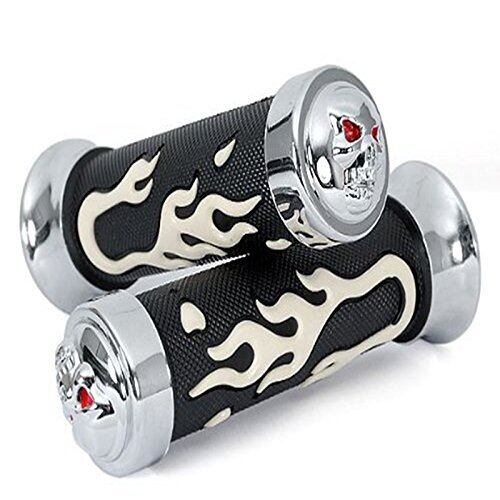 Szmsmy ガイコツ バイク グリップ 25mm メッキ 左右セット スカル バーエンド