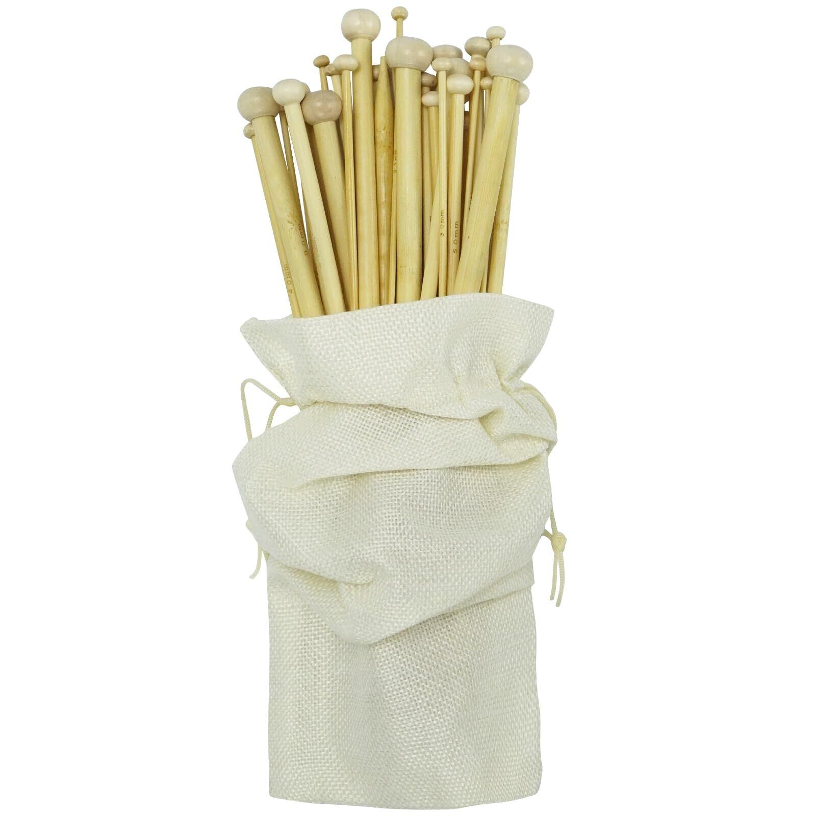 36本 編み針 棒針 かぎ棒 竹製 編み棒 手あみ針 くつした針 25cm長 玉付18サイズ 棒針セット 巻尺、ハサミ、段数マーカー、とじ針、レース針、収納ケース付