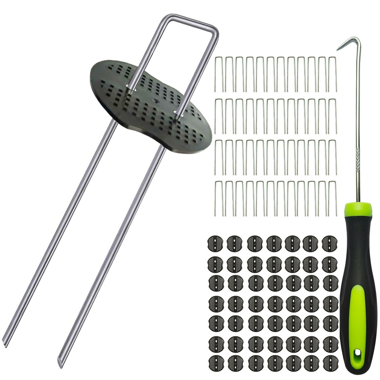 【抜きフック付き、再利用可能】便利な引き掛け針工具も付属しており、スムーズな設置をサポートします。再利用の際に作業効率が大幅に向上して、とても便利です。製品を繰り返し使用することで資源の消費を減らし、経済的な負担を軽減できます。ピンの長さ15㎝と20㎝の2種類があります。選べる数量:30本、50本、100本、200本のセットから選択可能です。