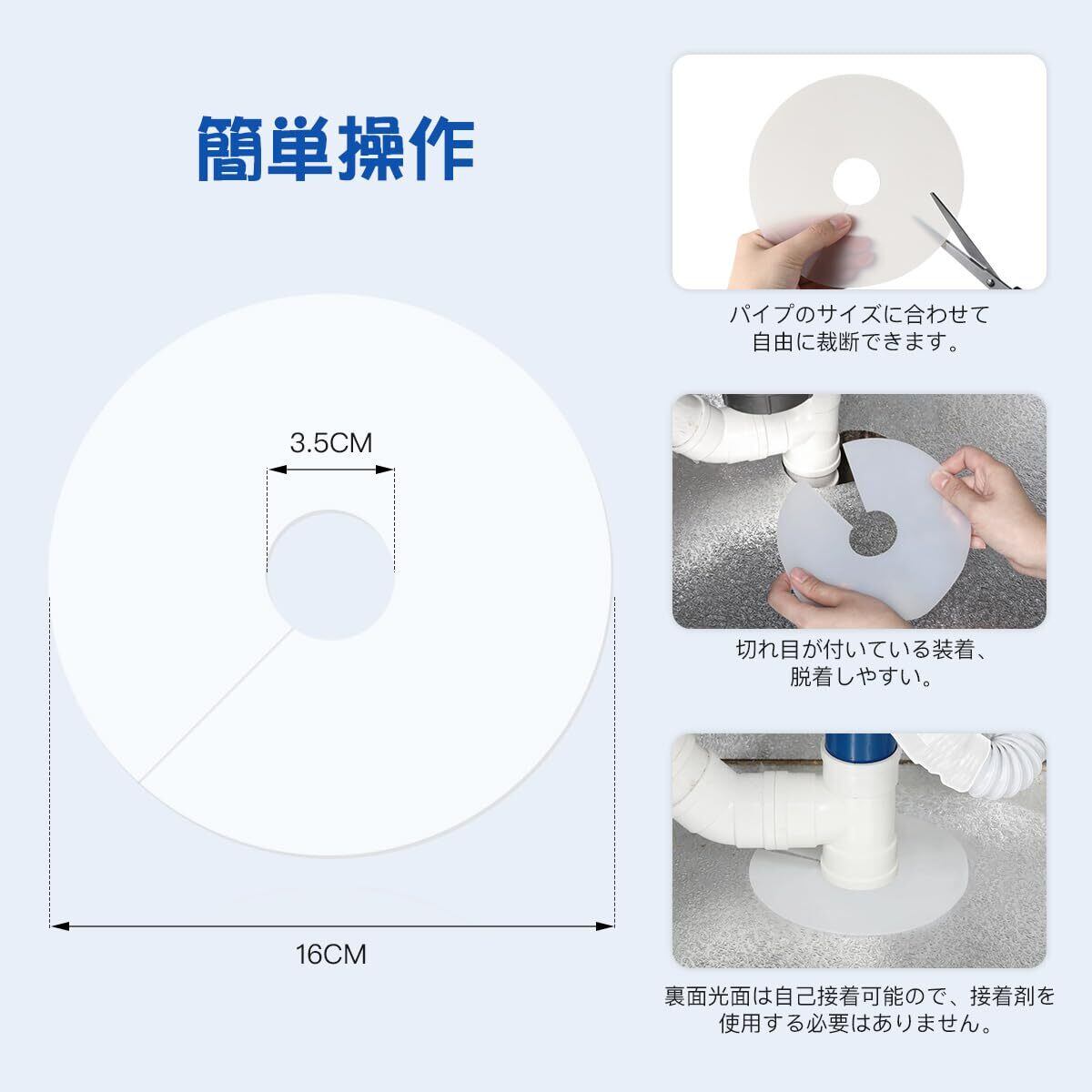 【簡単操作】:排水口カバーはパイプのサイズに合わせて自由に裁断できます。切れ目が付いている装着、脱着しやすく、裏面光面は自己接着可能ので、接着剤を使用する必要はありません。